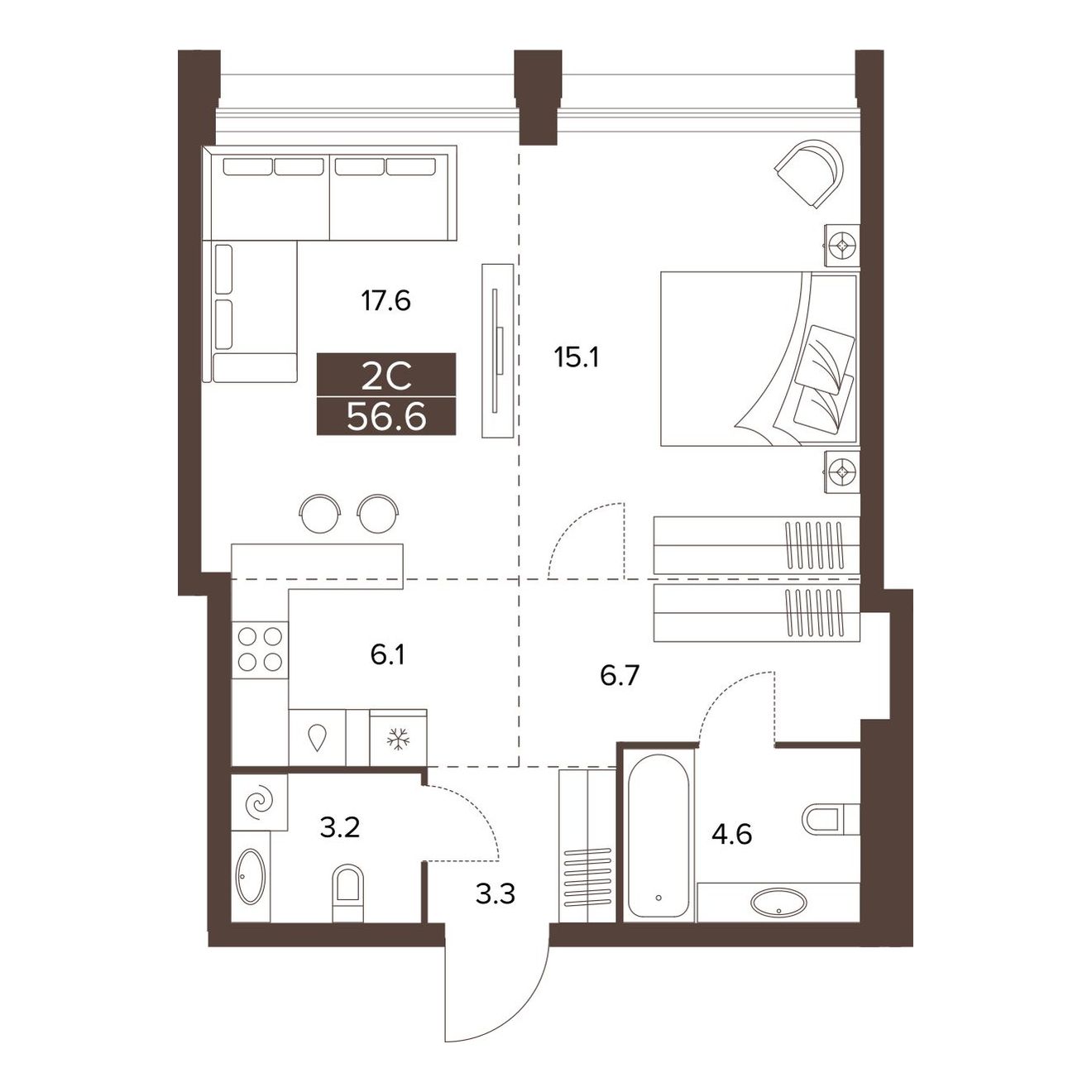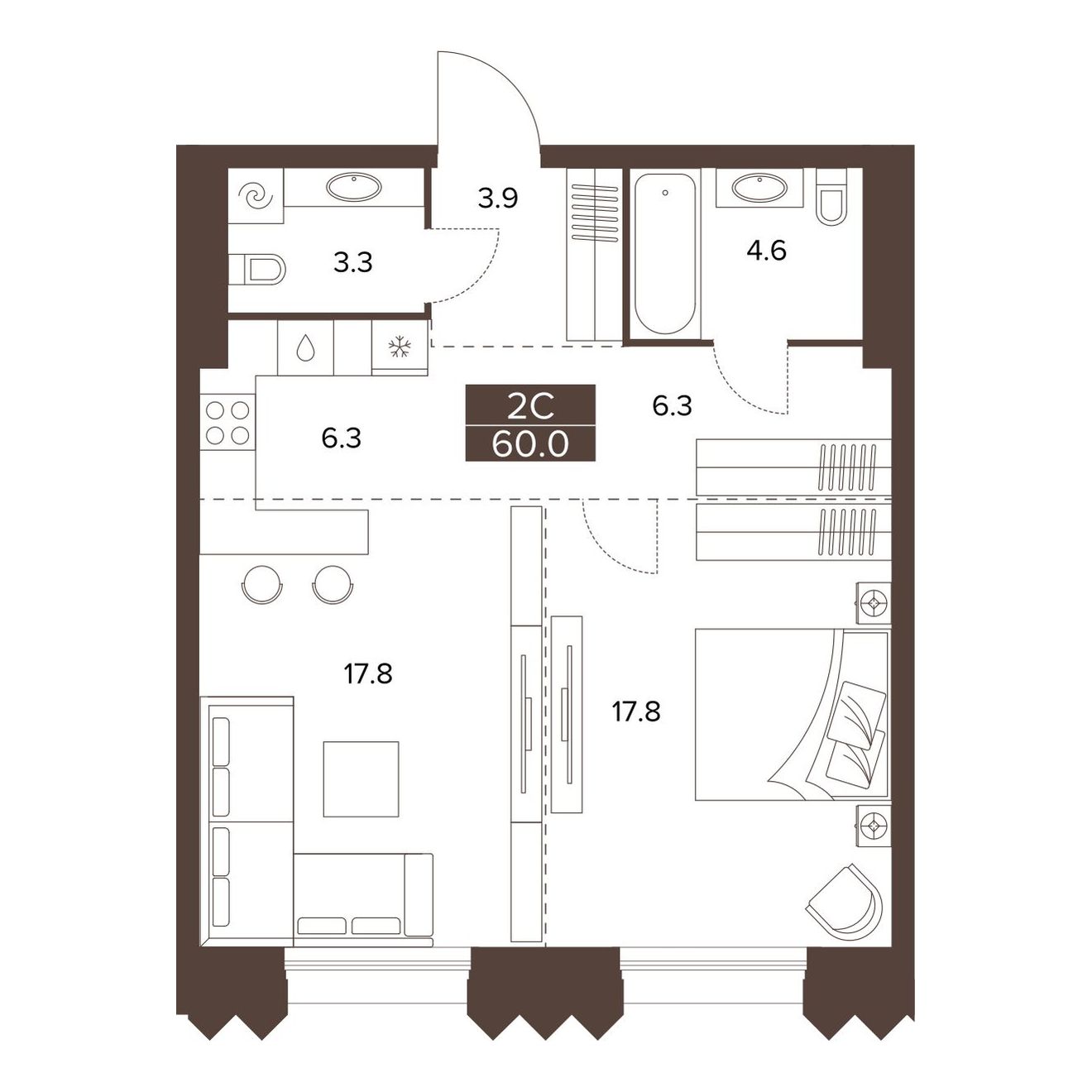 | 2-комн | от 57 м² до 60 м² | от 19,79 млн ₽ | 17 |