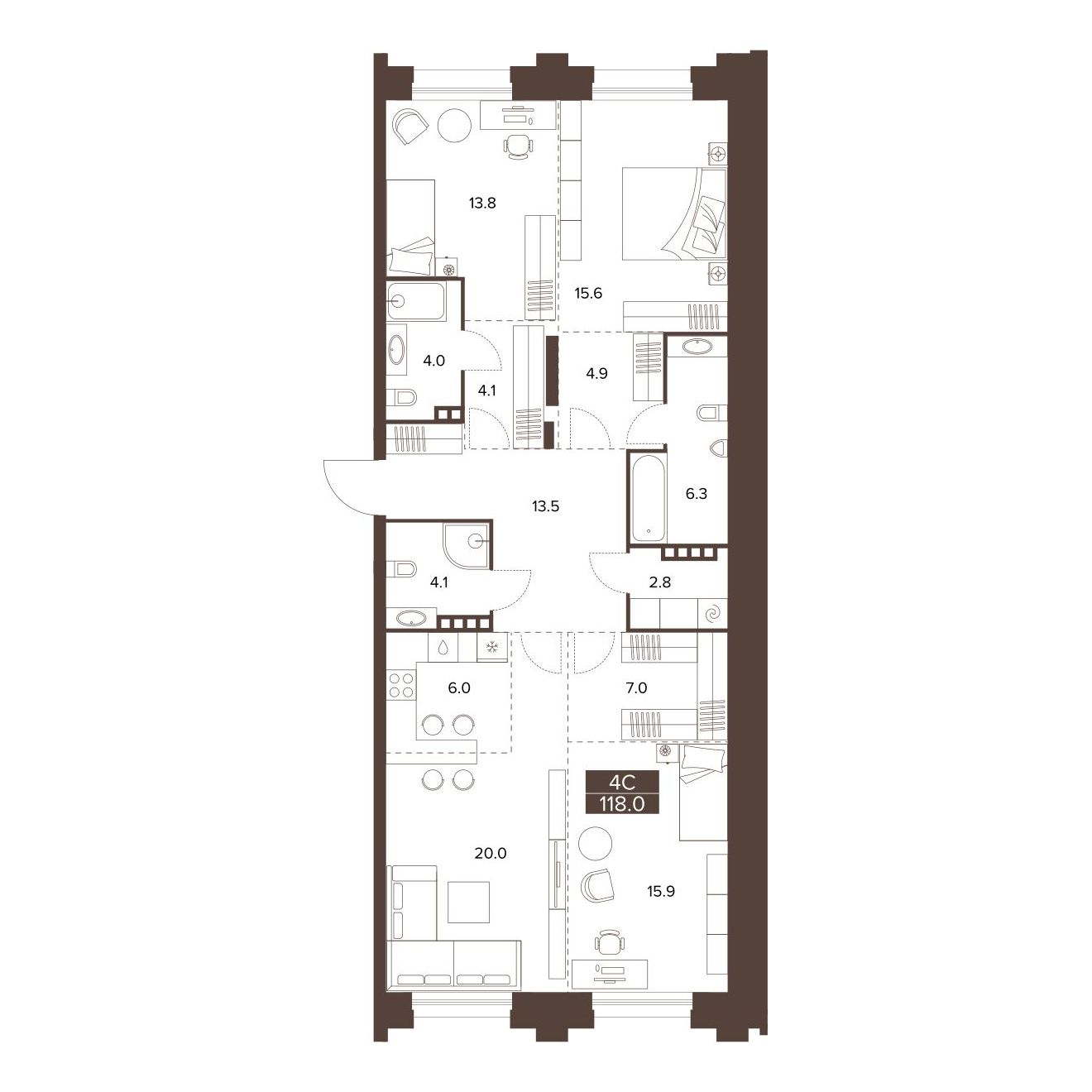 | 4-комн | от 117 м² до 225 м² | от 37,44 млн ₽ | 41 |