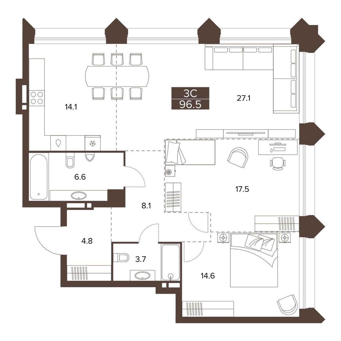 | 3-комн | от 82 м² до 141 м² | от 26,67 млн ₽ | 41 |