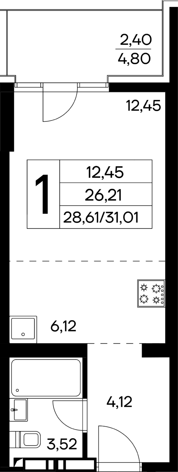 | Студии | от 26 м² | от 11,78 млн ₽ | 2 |