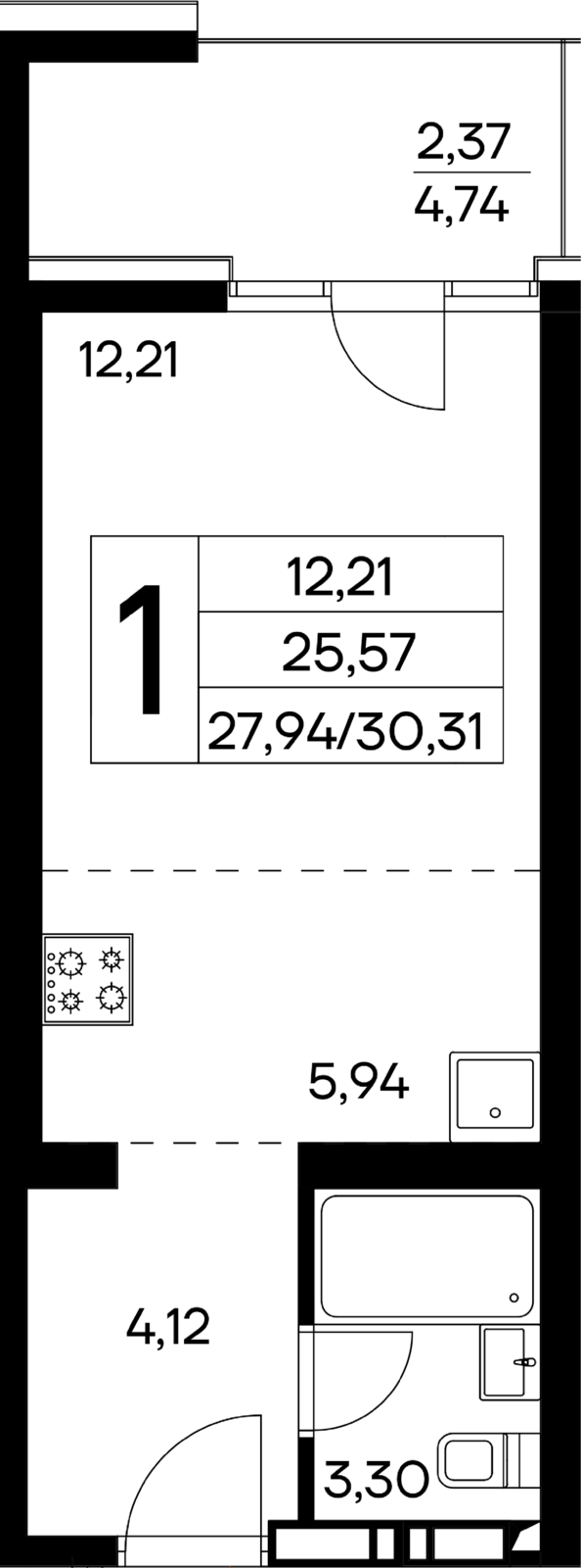 | 1-комн | от 30 м² до 47 м² | от 9,43 млн ₽ | 370 |
