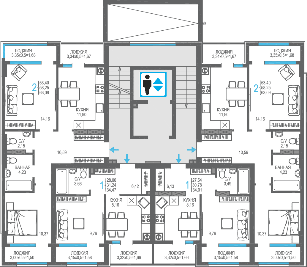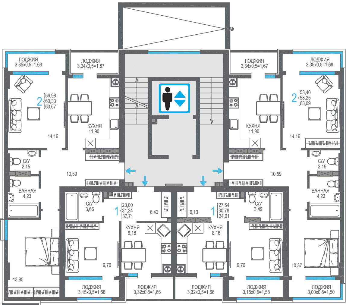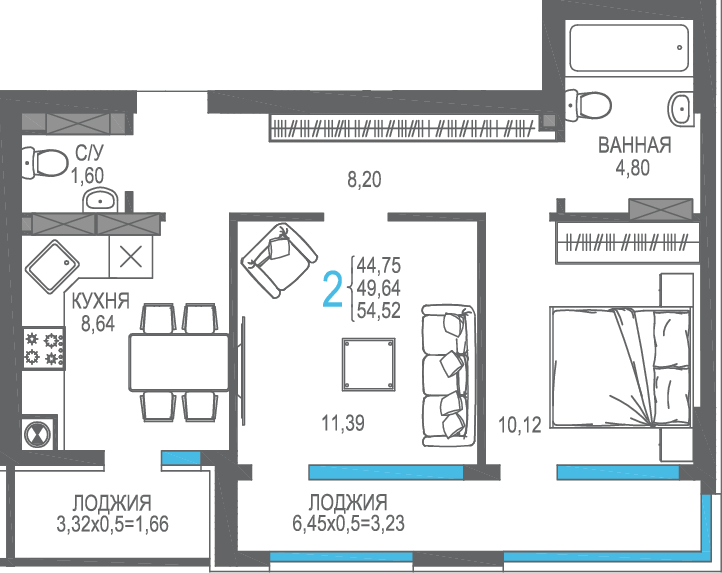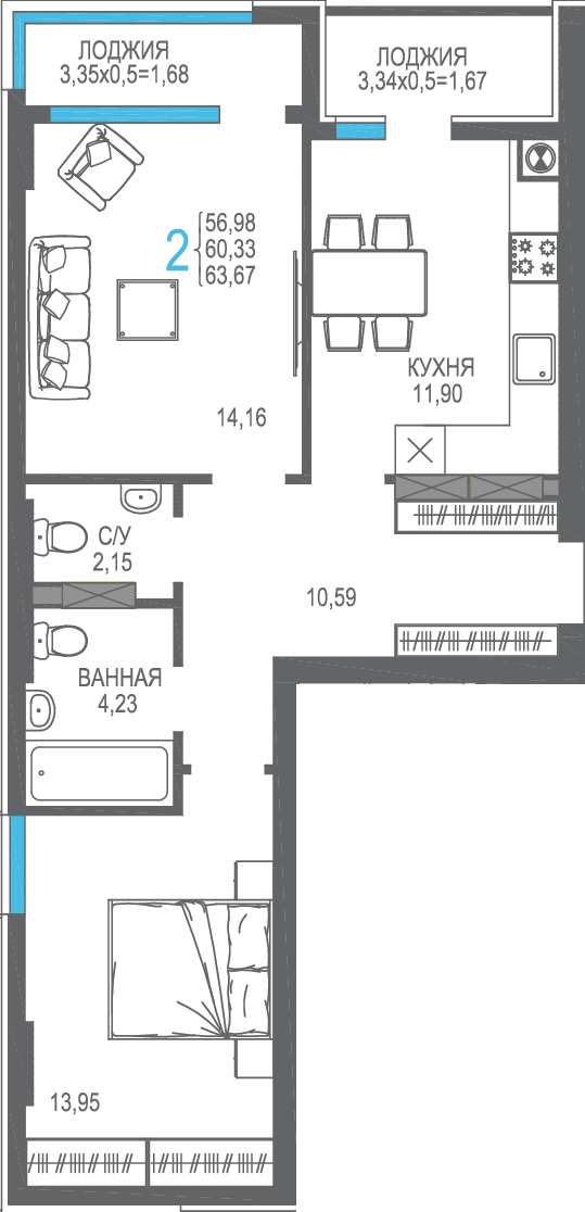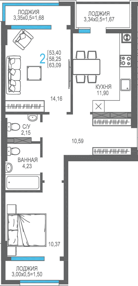 | 2-комн | от 50 м² до 60 м² | от 15,37 млн ₽ | 23 |