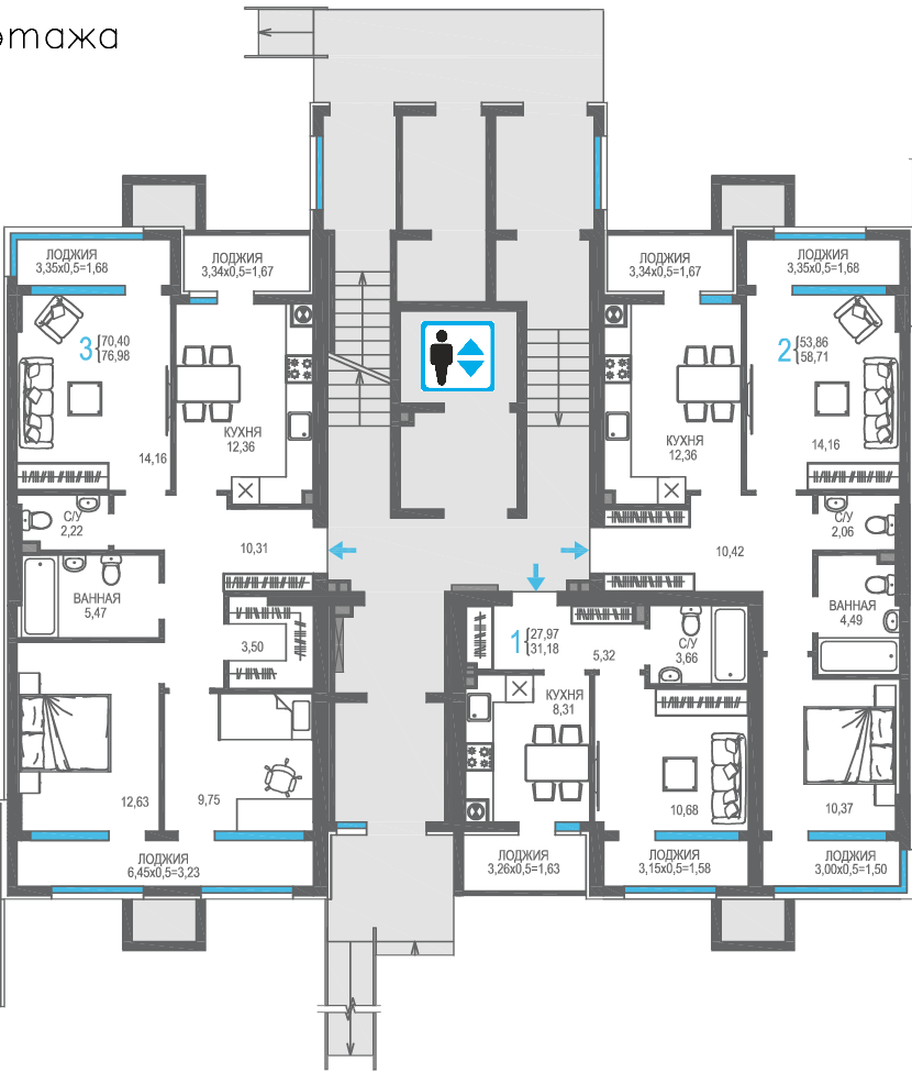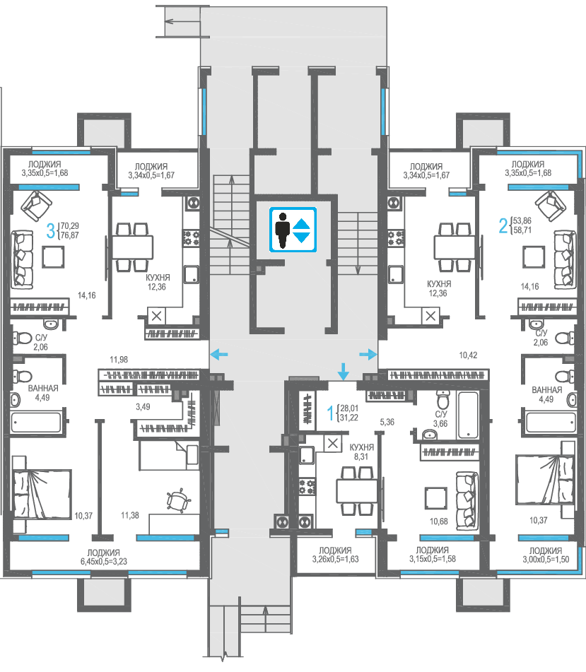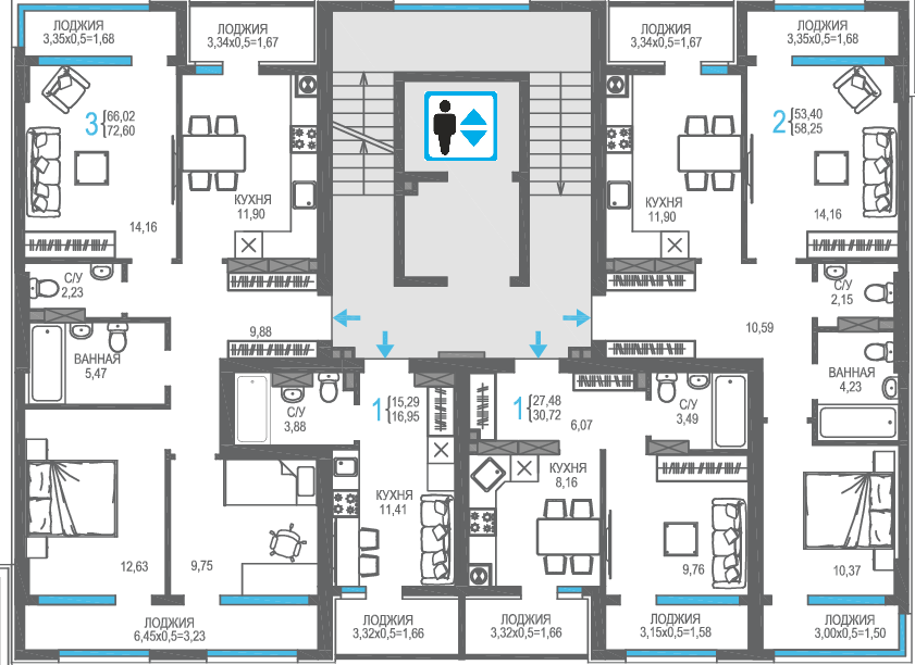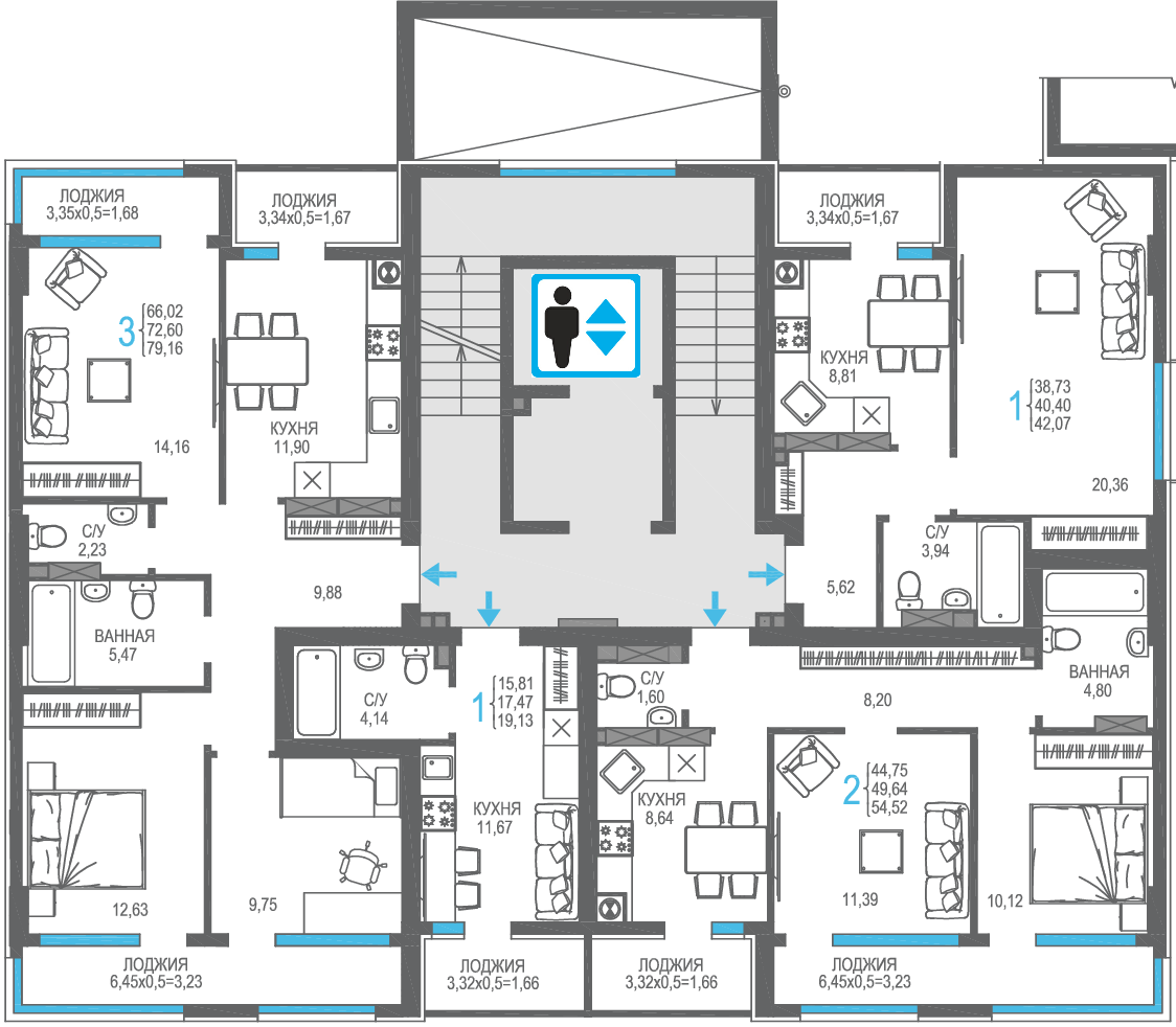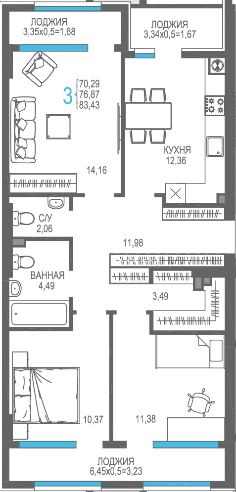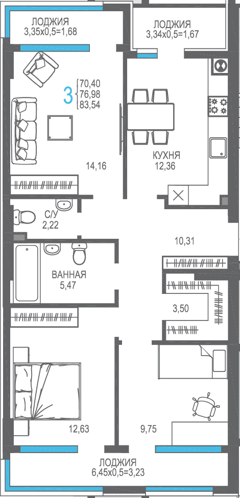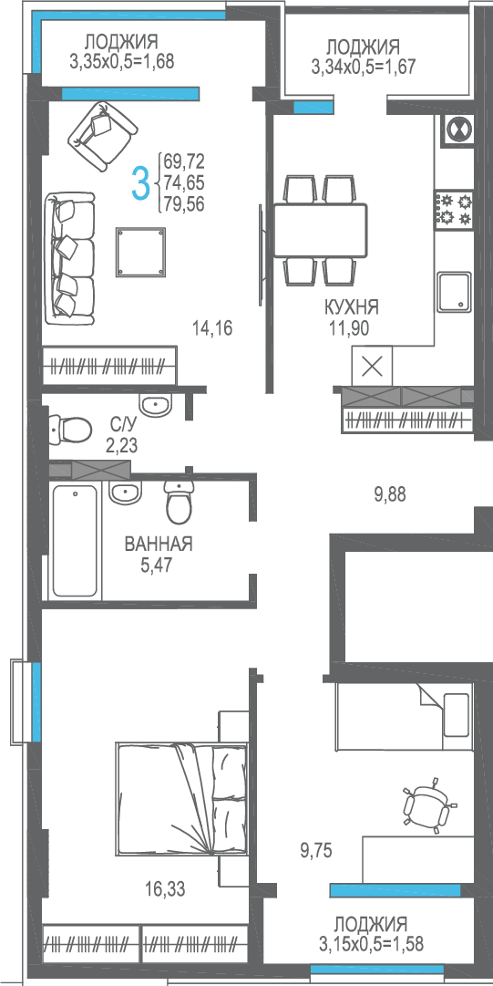 | 3-комн | от 73 м² до 79 м² | от 18,49 млн ₽ | 19 |