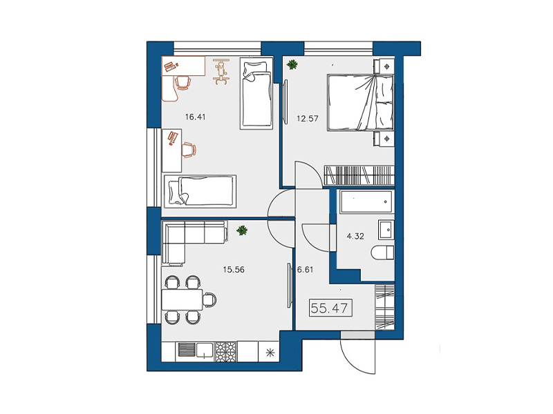 | 2-комн | от 46 м² до 55 м² | от 6,49 млн ₽ | 8 |