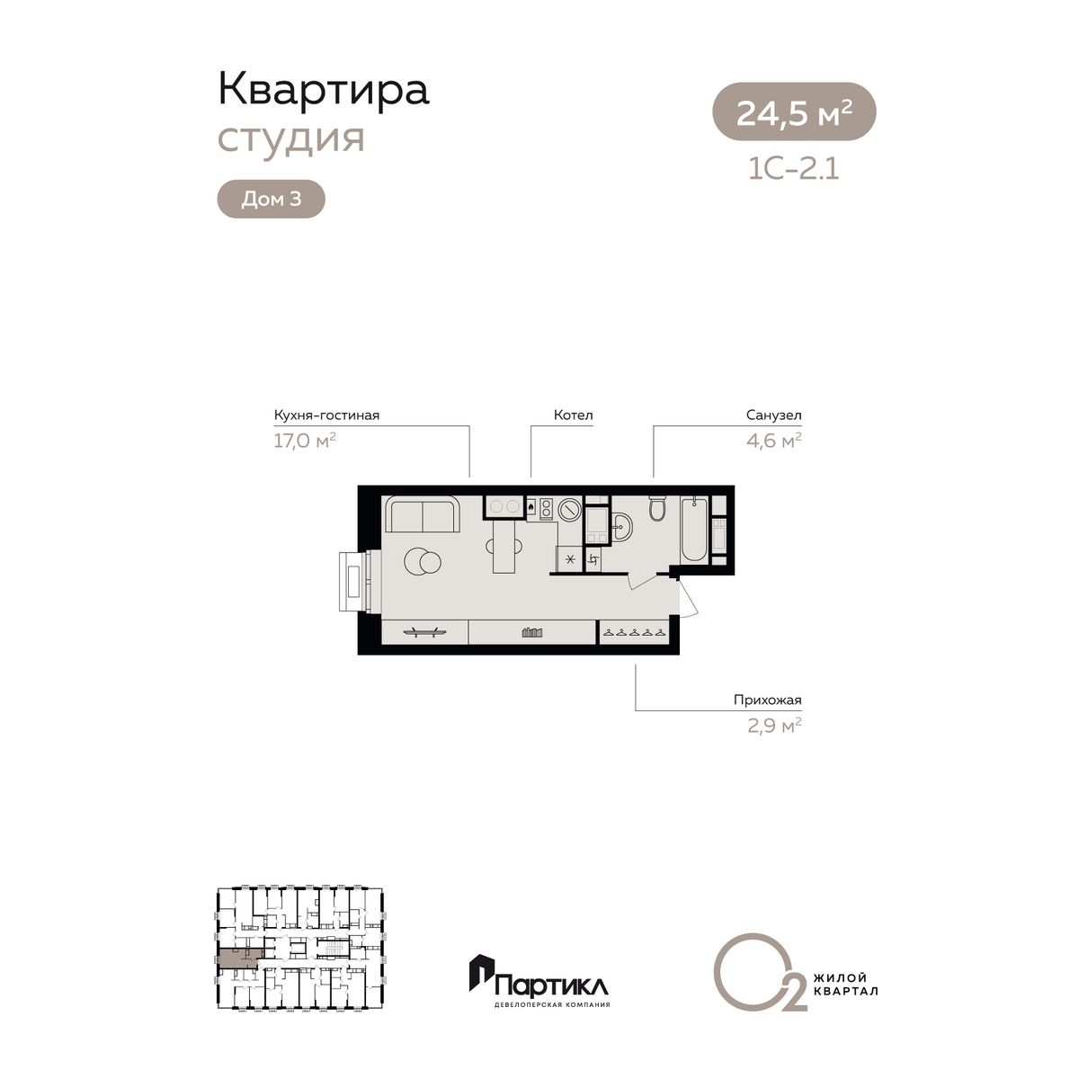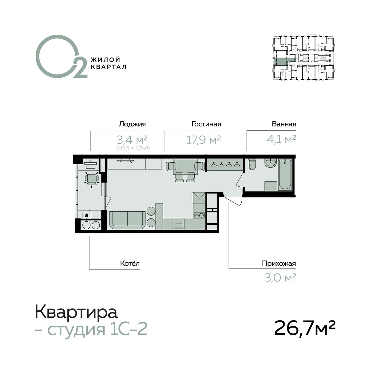 | Студии | от 24 м² до 27 м² | от 4,27 млн ₽ | 70 |
