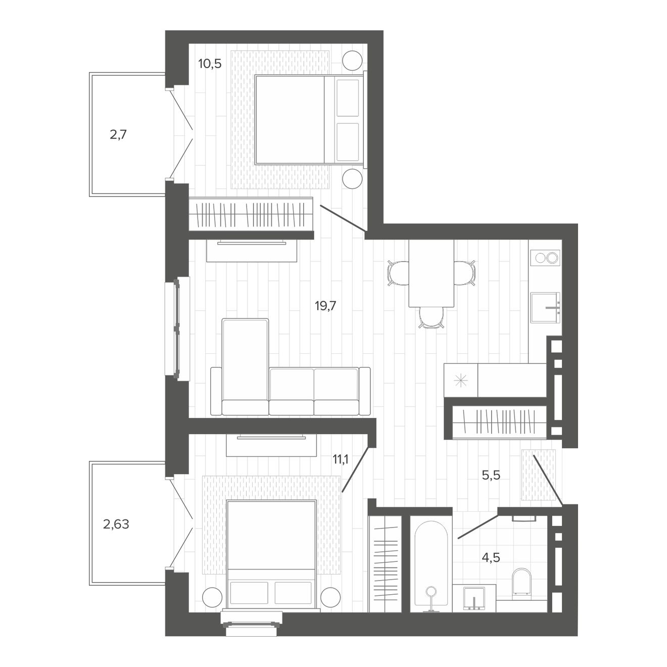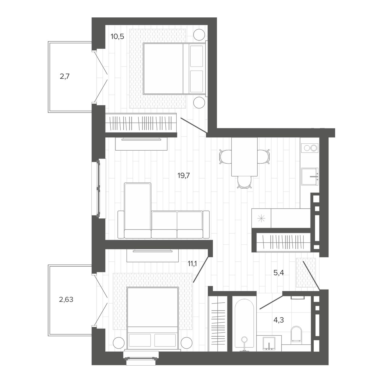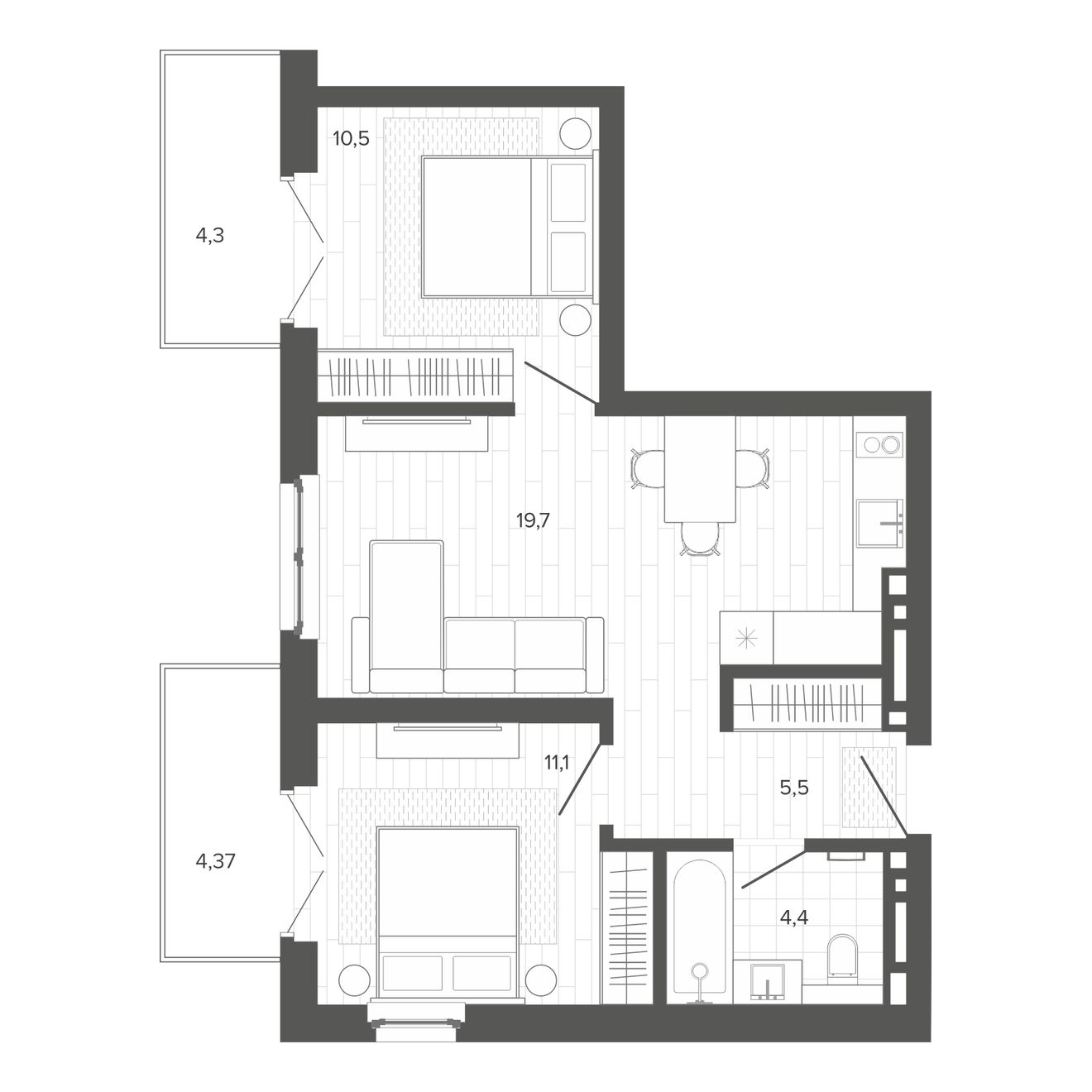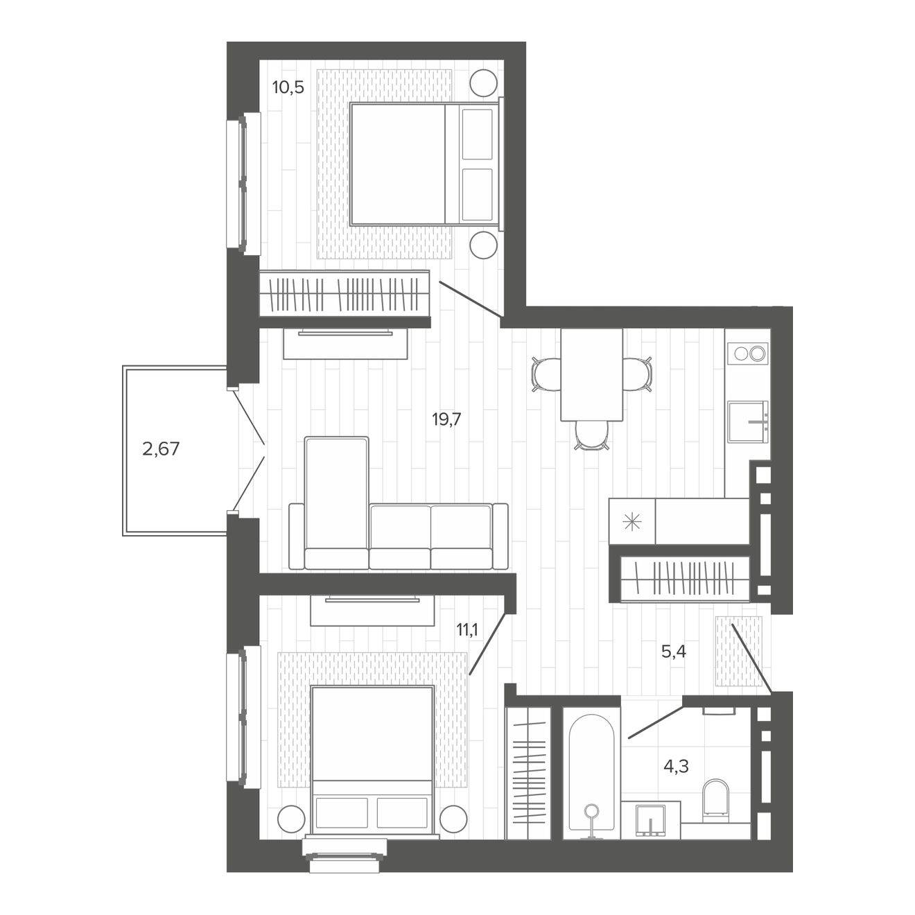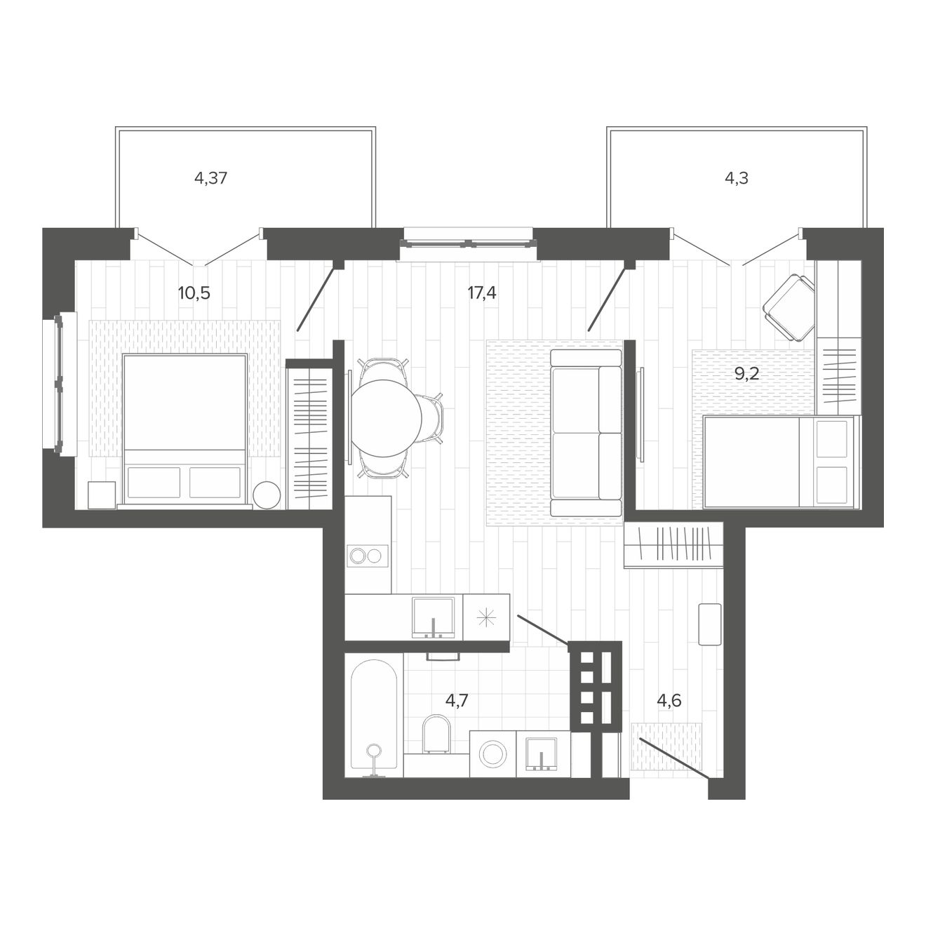 | 2-комн | от 43 м² до 53 м² | от 8,44 млн ₽ | 7 |