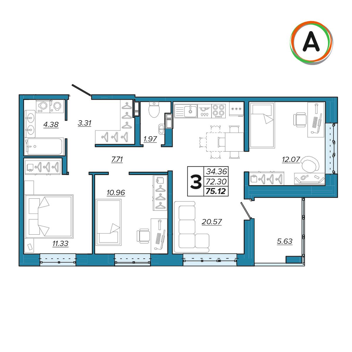 | 3-комн | от 75 м² | от 8,45 млн ₽ | 1 |