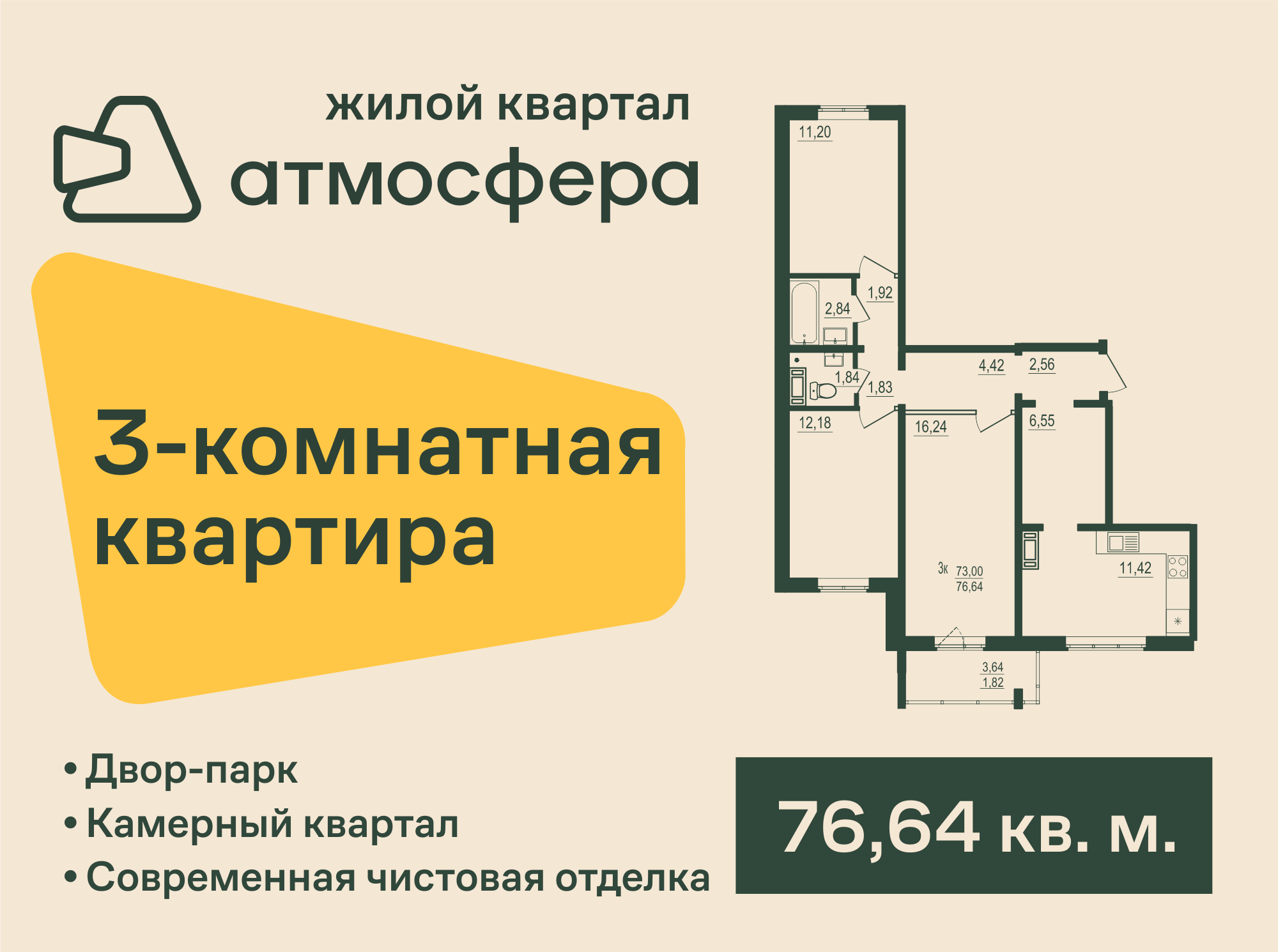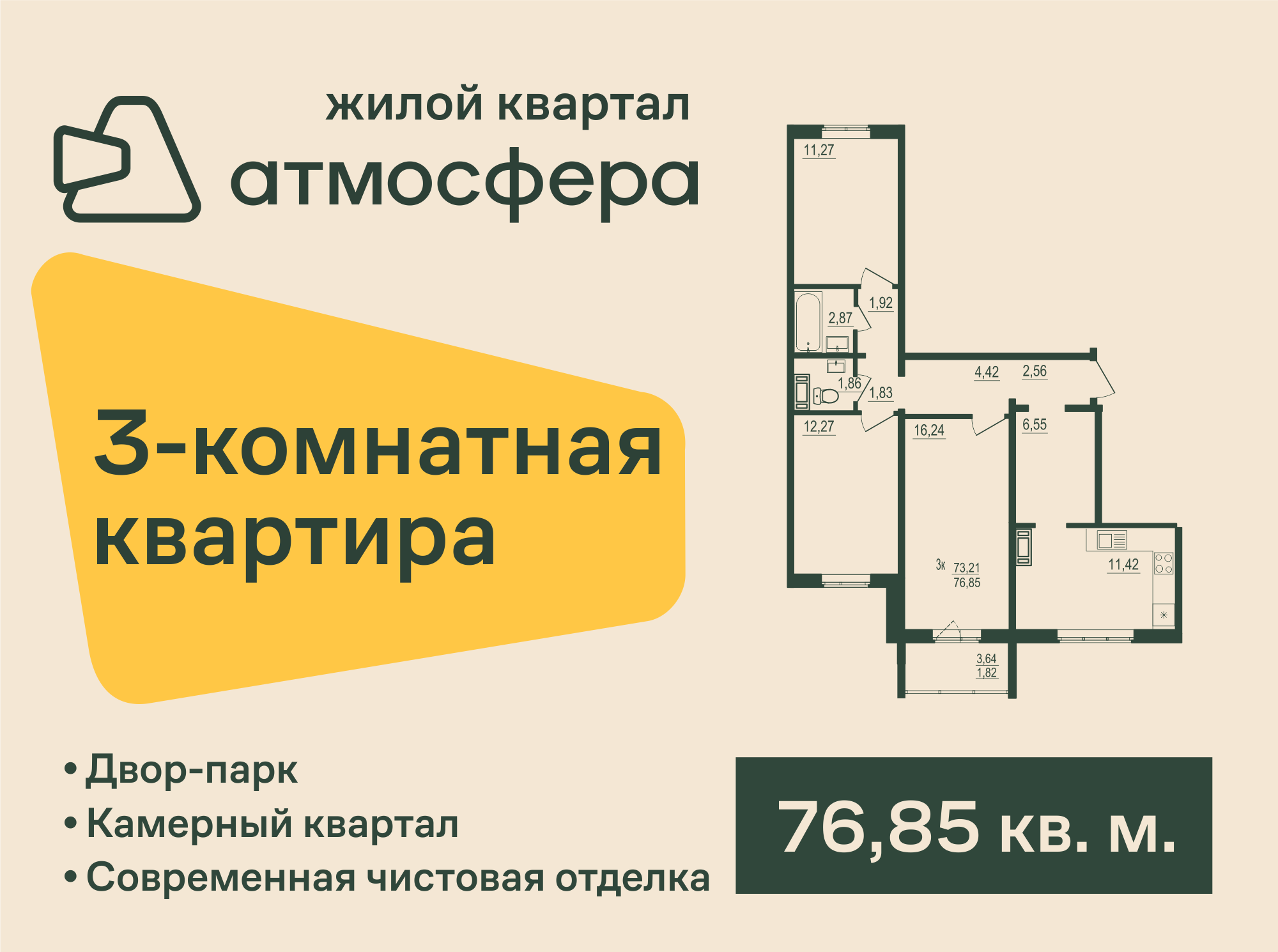 | 3-комн | от 63 м² до 77 м² | от 0 тыс. млн ₽ | 45 |