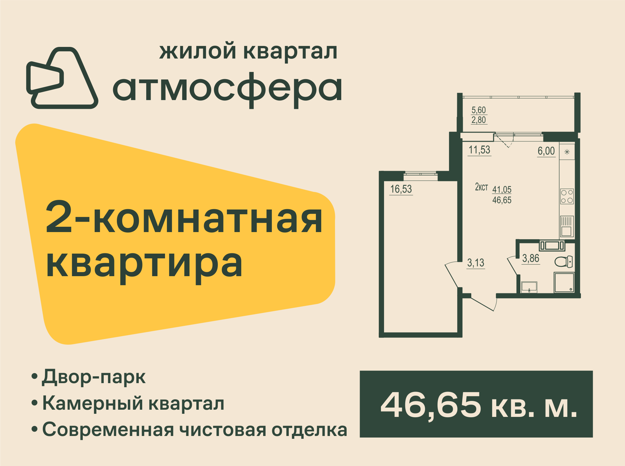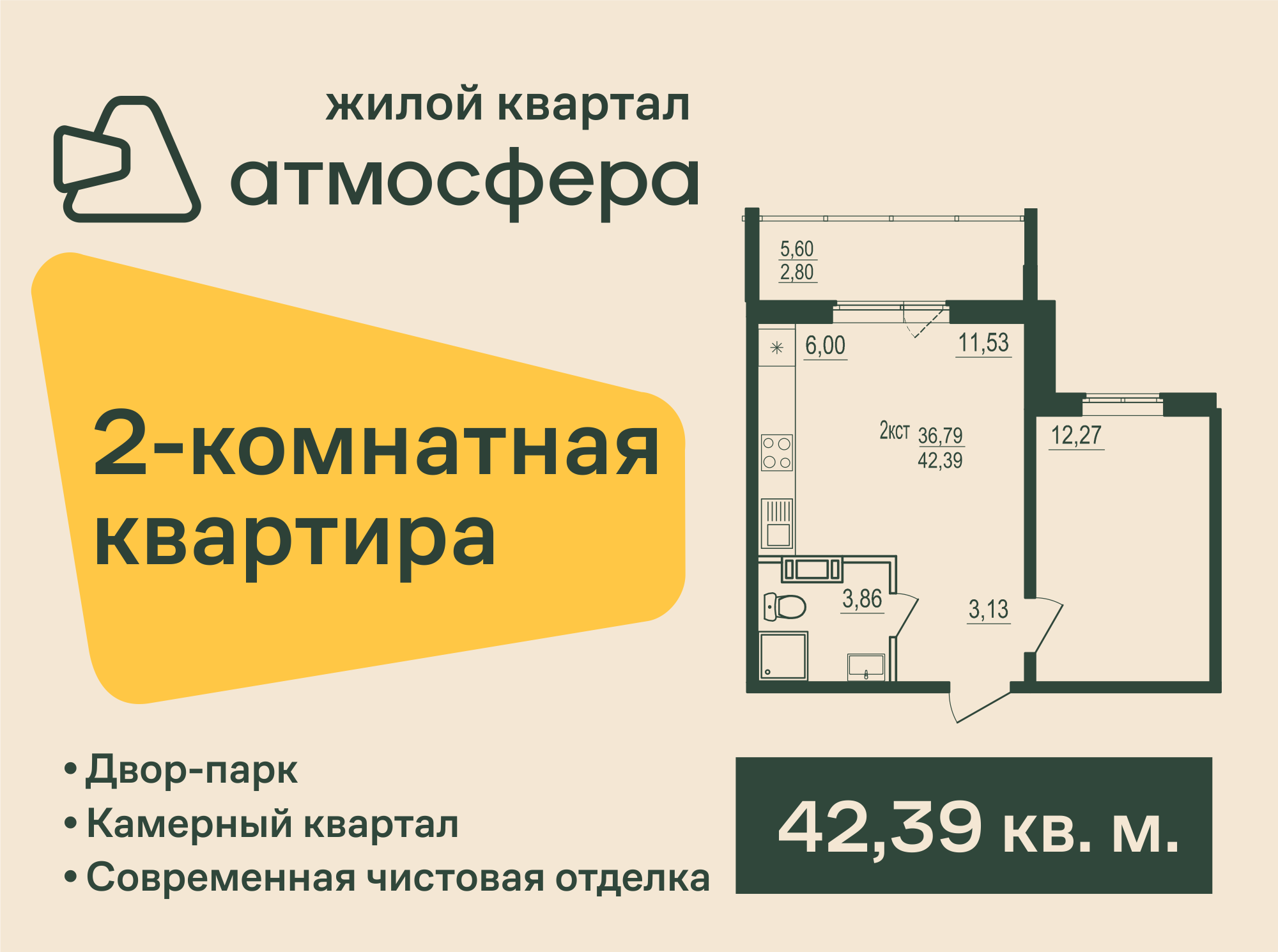 | 2-комн | от 42 м² до 54 м² | от 4,34 млн ₽ | 45 |