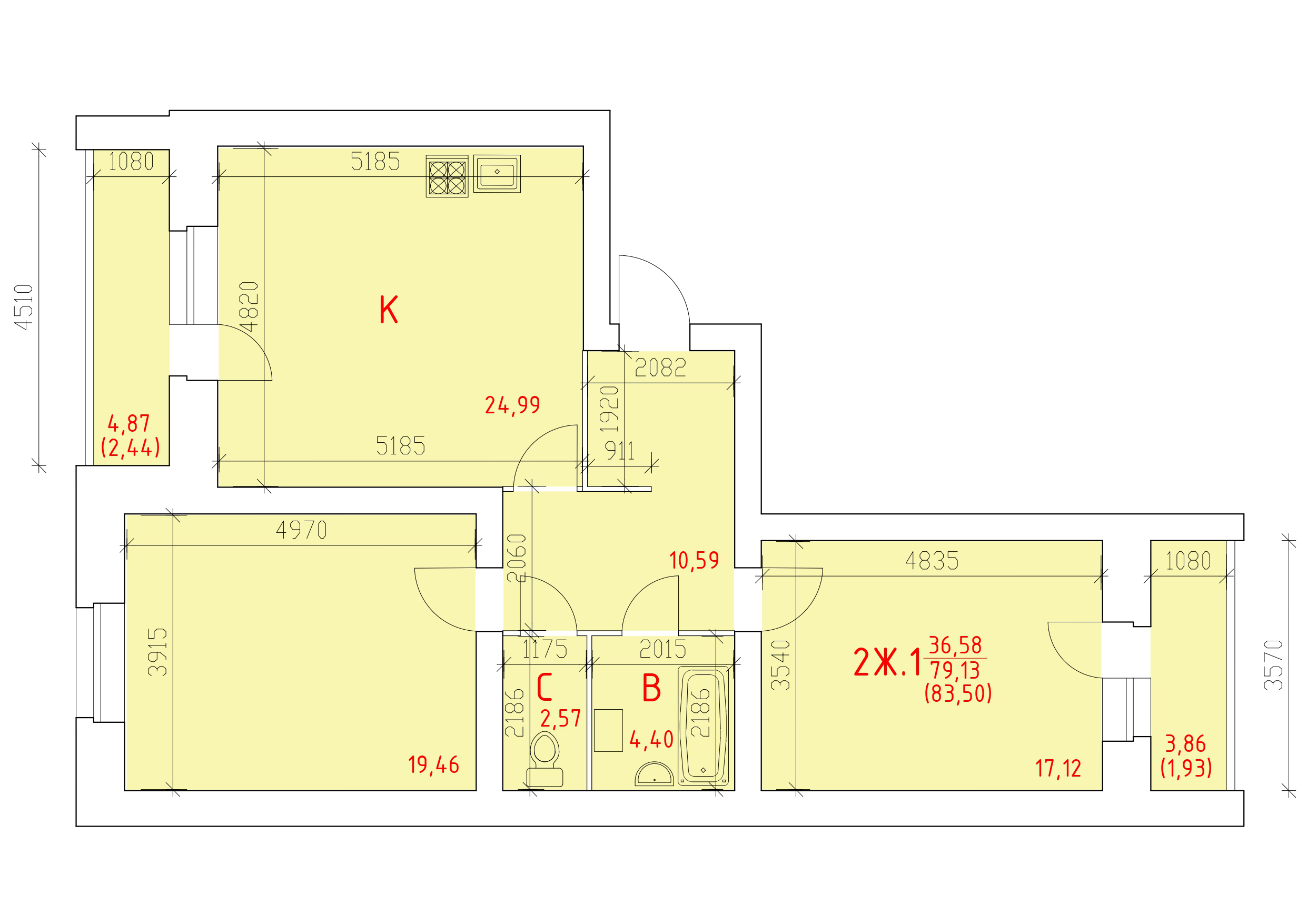 | 2-комн | от 69 м² до 84 м² | от 7,90 млн ₽ | 26 |
