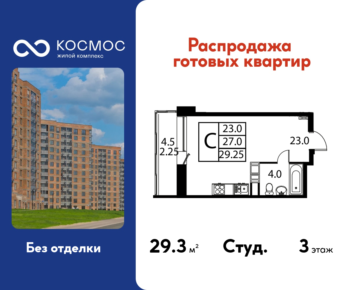 | Студии | от 28 м² до 29 м² | от 4,08 млн ₽ | 133 |