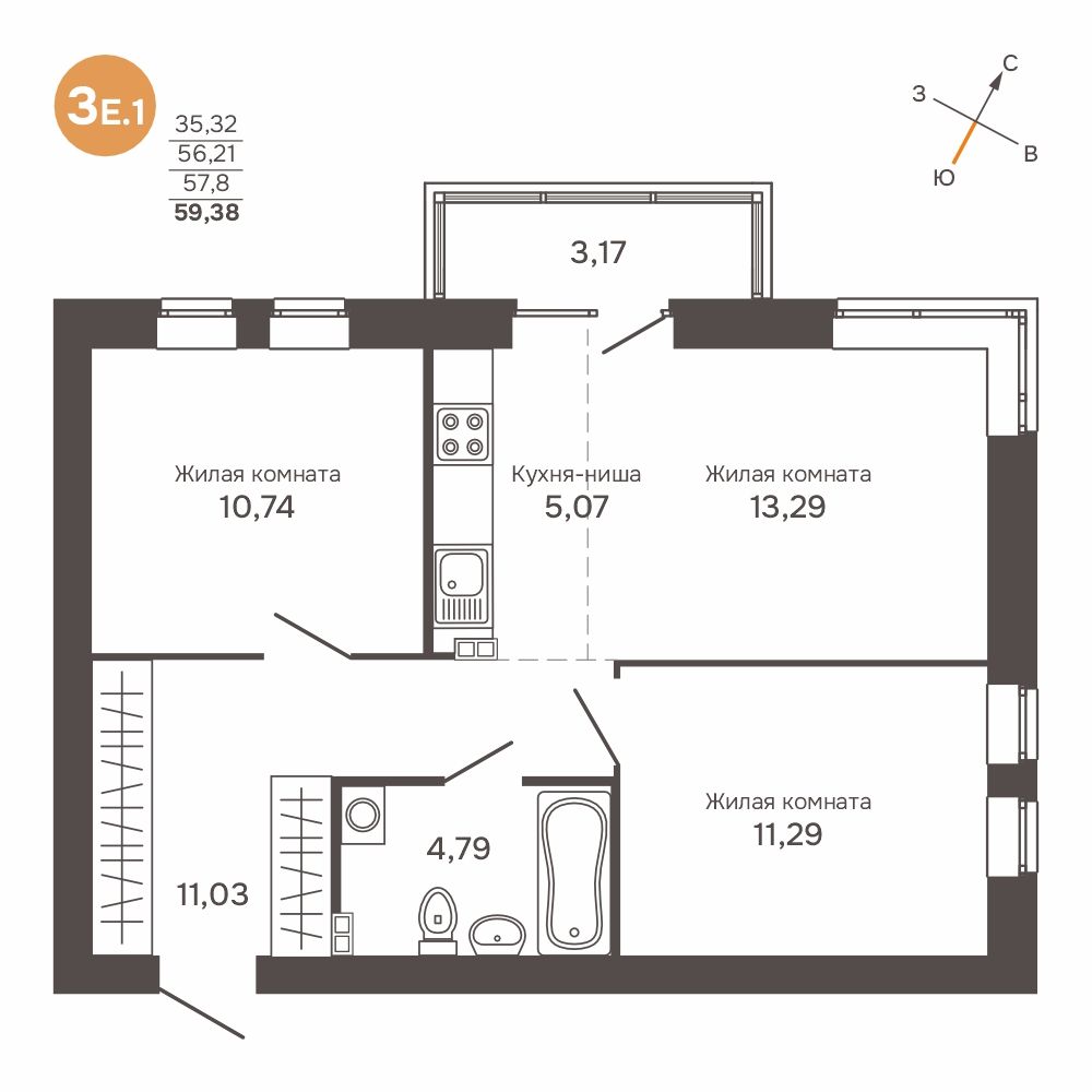 | 3-комн | от 53 м² до 66 м² | от 7,82 млн ₽ | 20 |