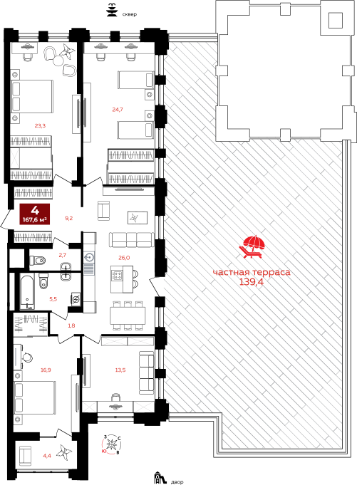| 4-комн | от 126 м² до 168 м² | от 28,62 млн ₽ | 7 |