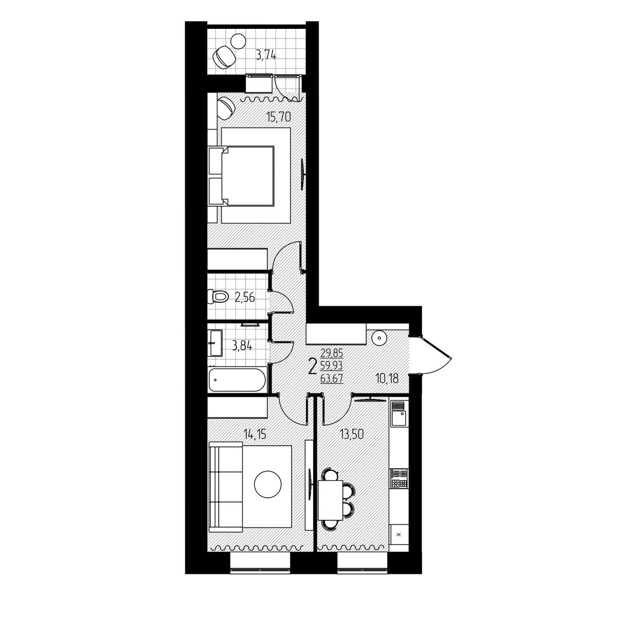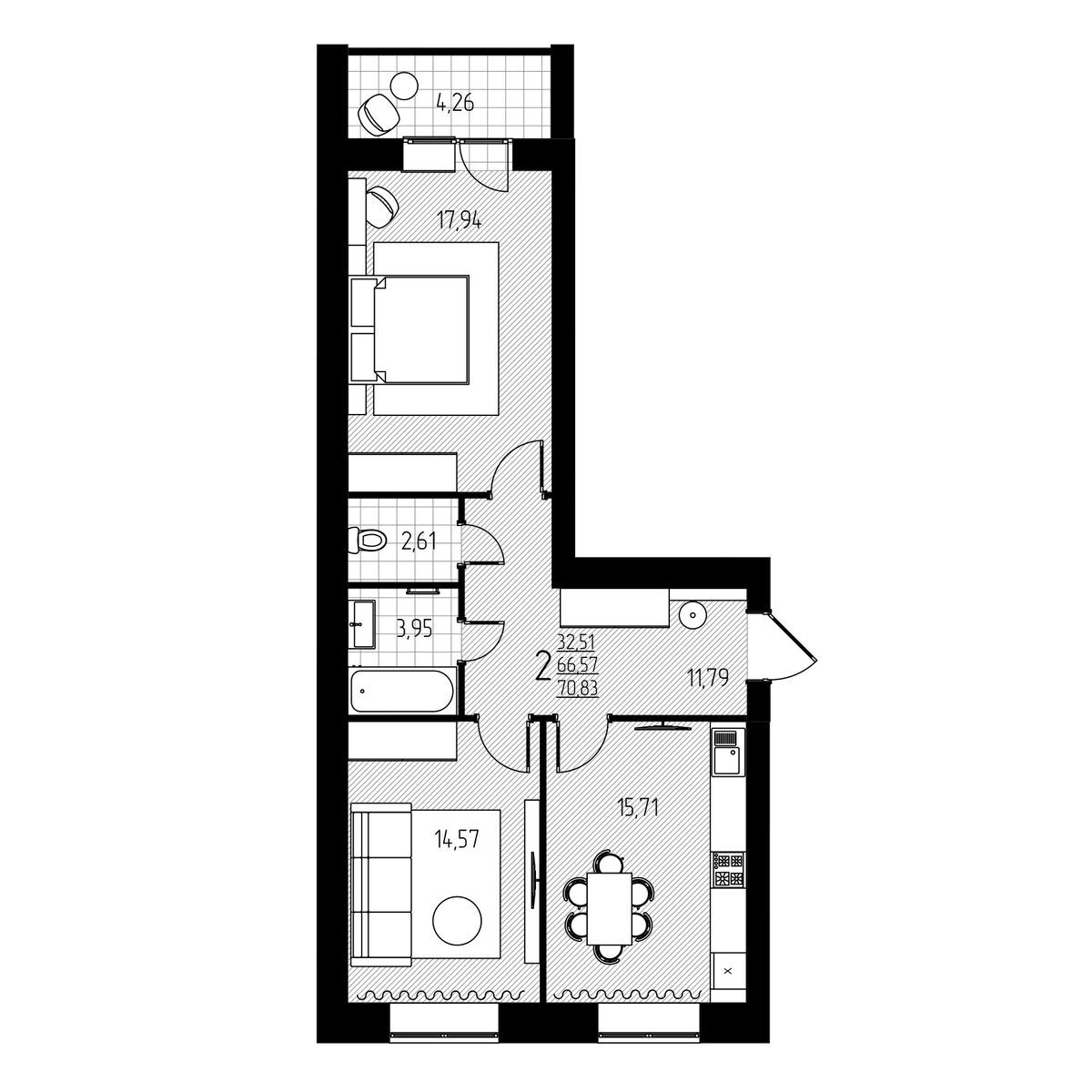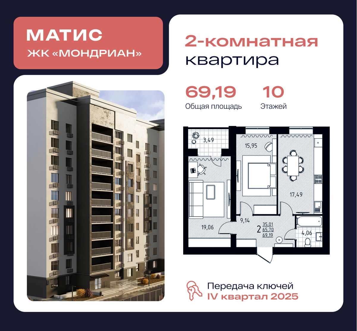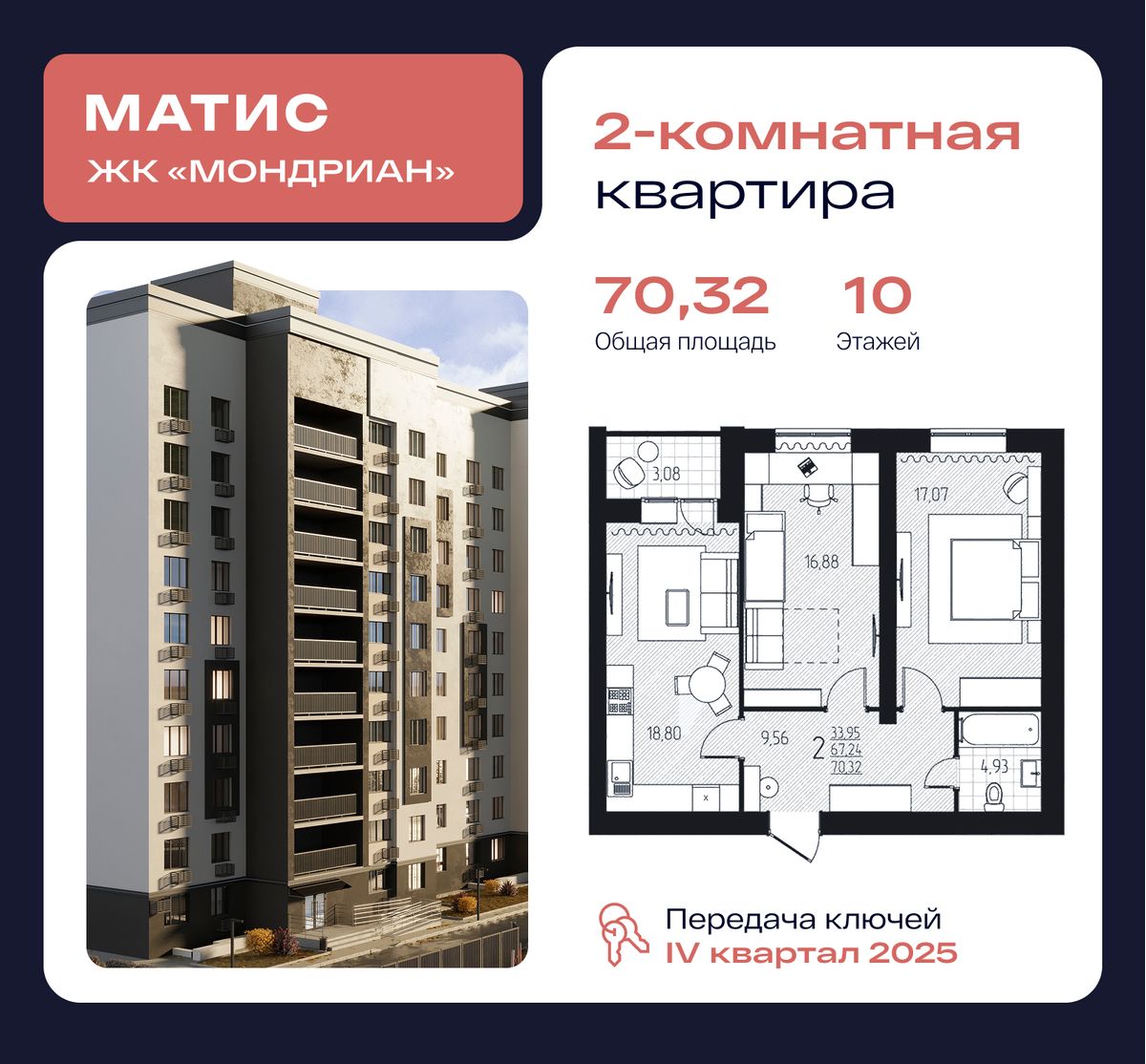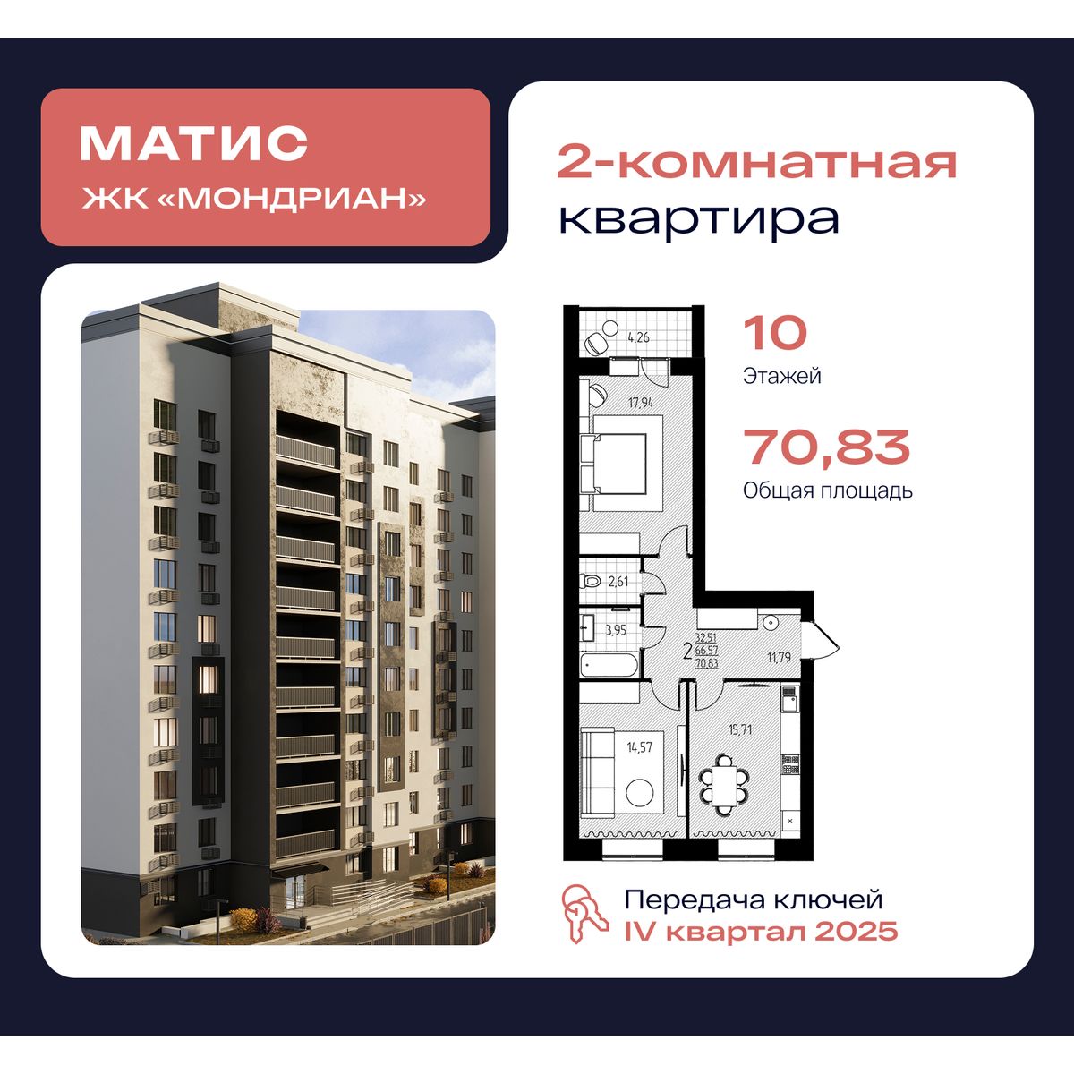 | 2-комн | от 64 м² до 71 м² | от 6,50 млн ₽ | 17 |