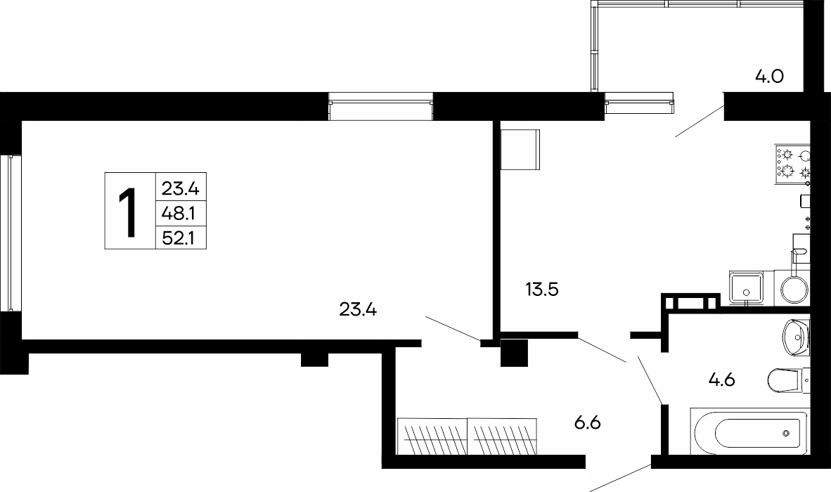 | 1-комн | от 33 м² до 52 м² | от 5,79 млн ₽ | 98 |