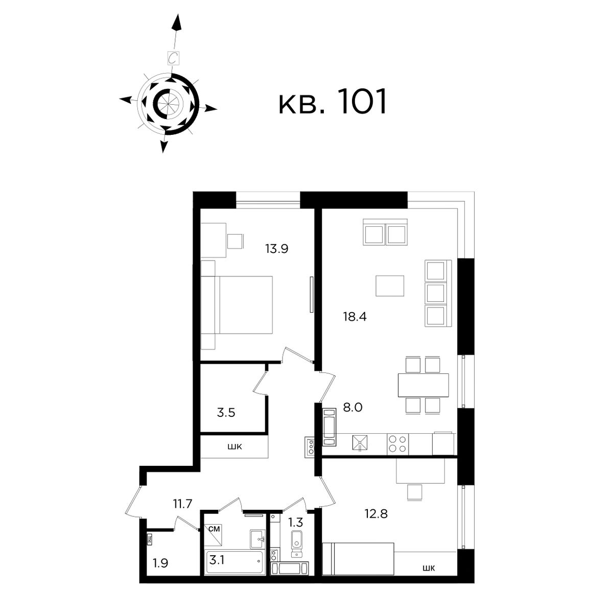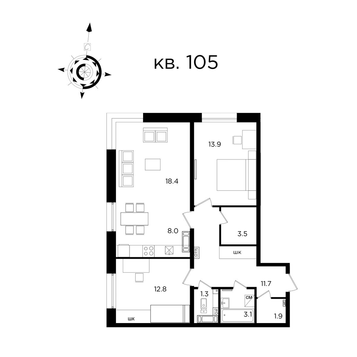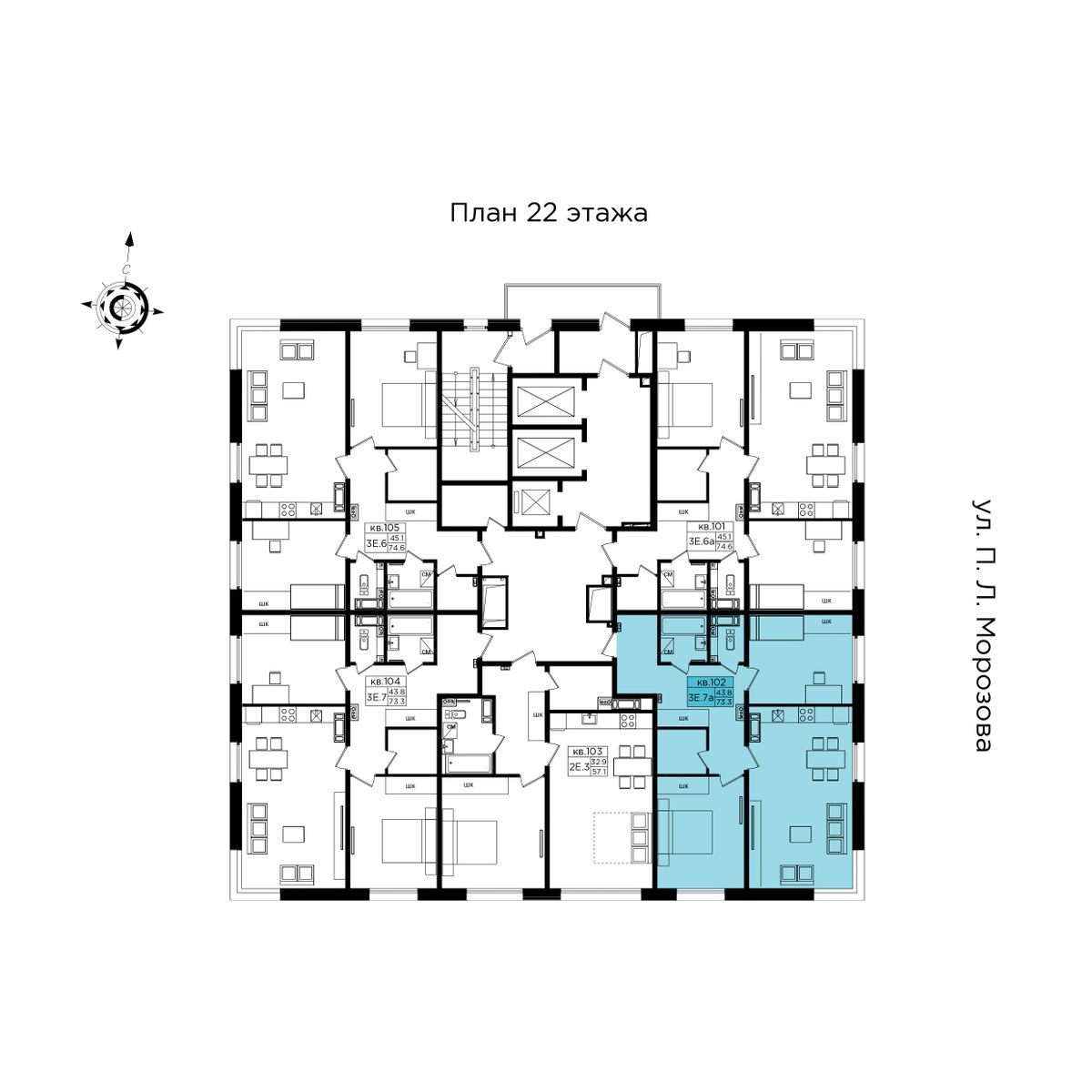 | 3-комн | от 73 м² до 74 м² | от 13,80 млн ₽ | 5 |
