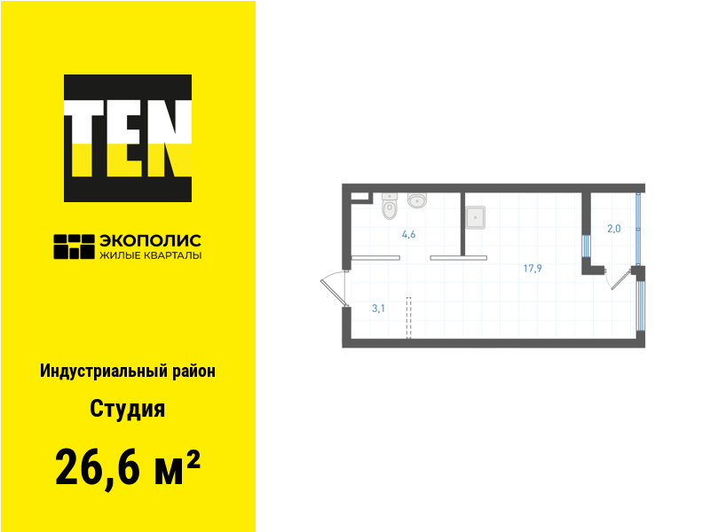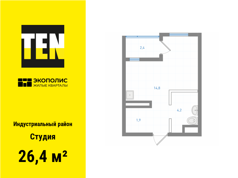 | Студии | от 16 м² до 29 м² | от 4,26 млн ₽ | 72 |