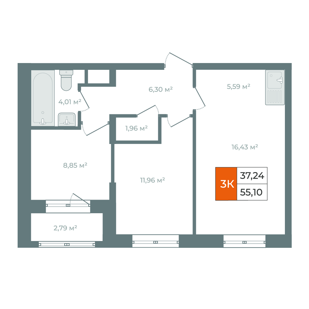 | 3-комн | от 54 м² до 69 м² | от 8,43 млн ₽ | 35 |