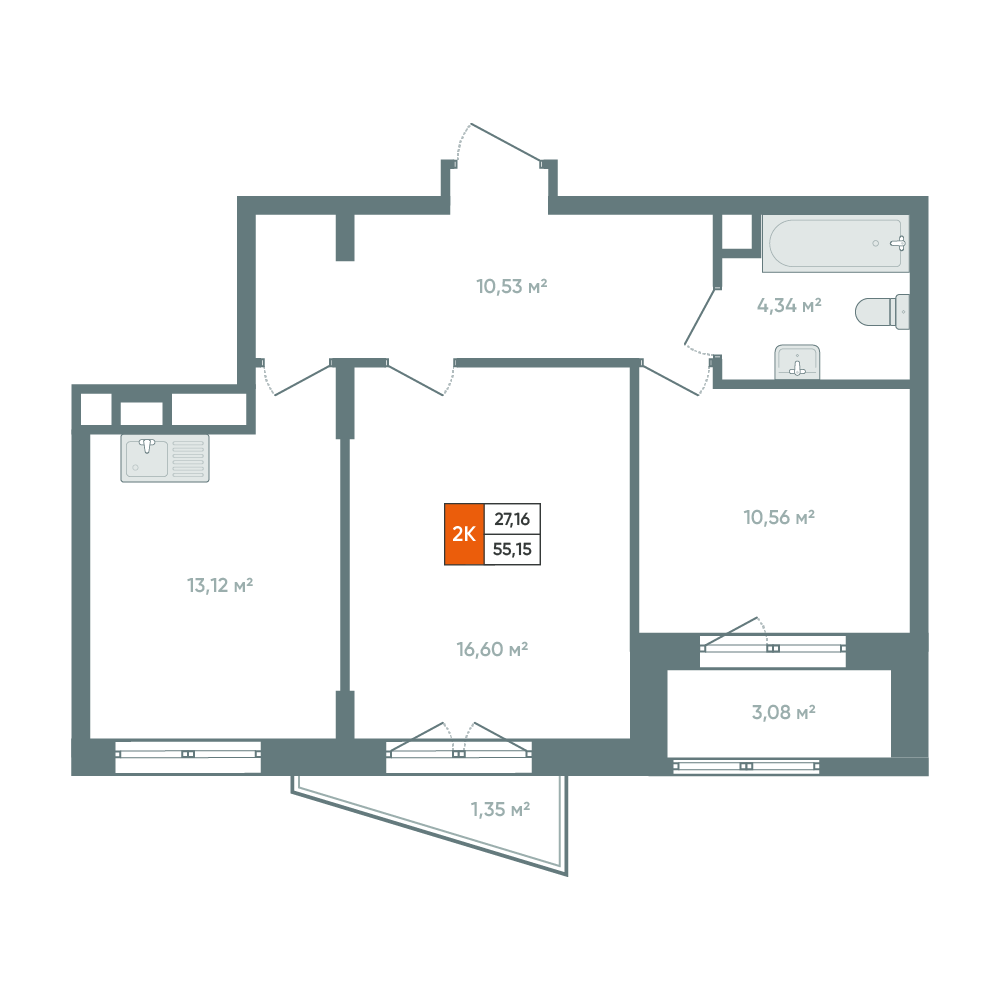 | 2-комн | от 42 м² до 64 м² | от 8,94 млн ₽ | 19 |