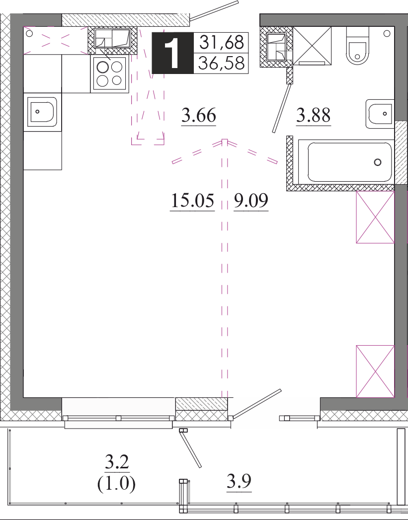 | Тип | Площадь | Цена | Кол-во |