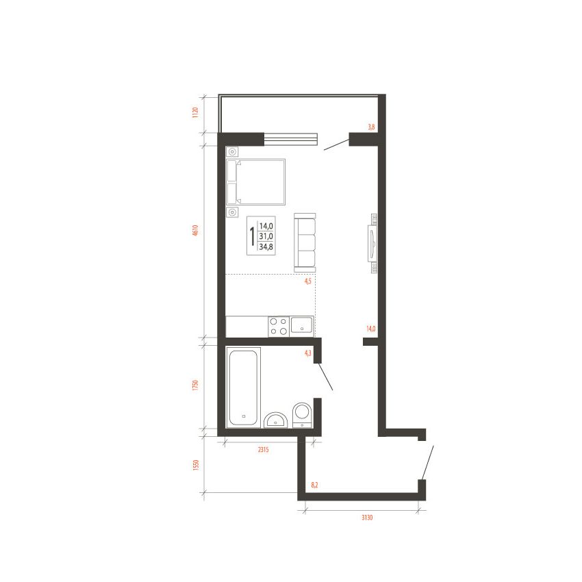 | 1-комн | от 29 м² до 41 м² | от 3,85 млн ₽ | 27 |