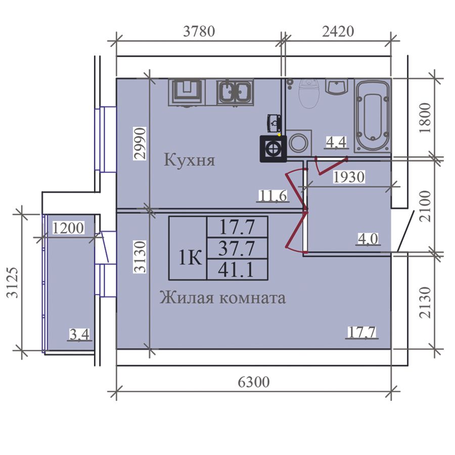 | 1-комн | от 39 м² до 45 м² | от 4,70 млн ₽ | 58 |