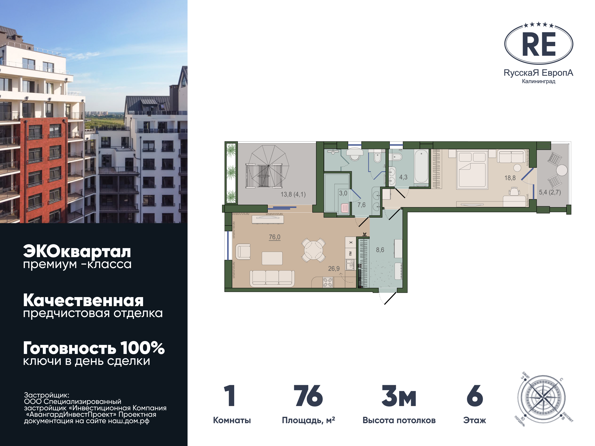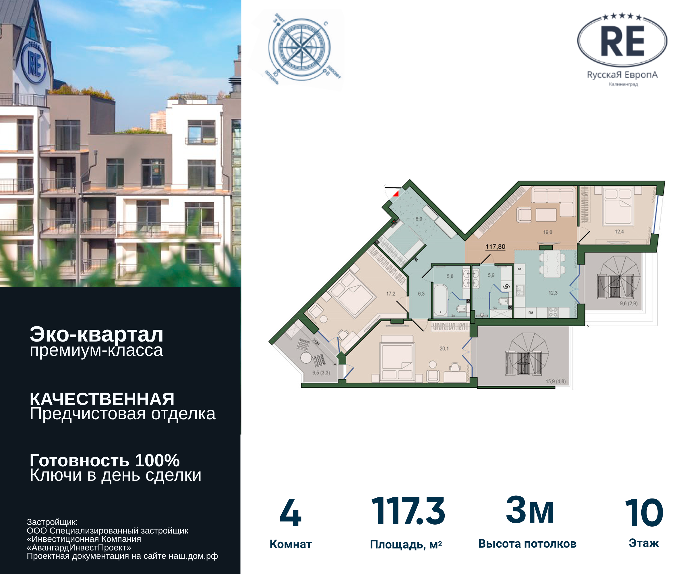 | 4-комн | от 117 м² | от 21,94 млн ₽ | 1 |
