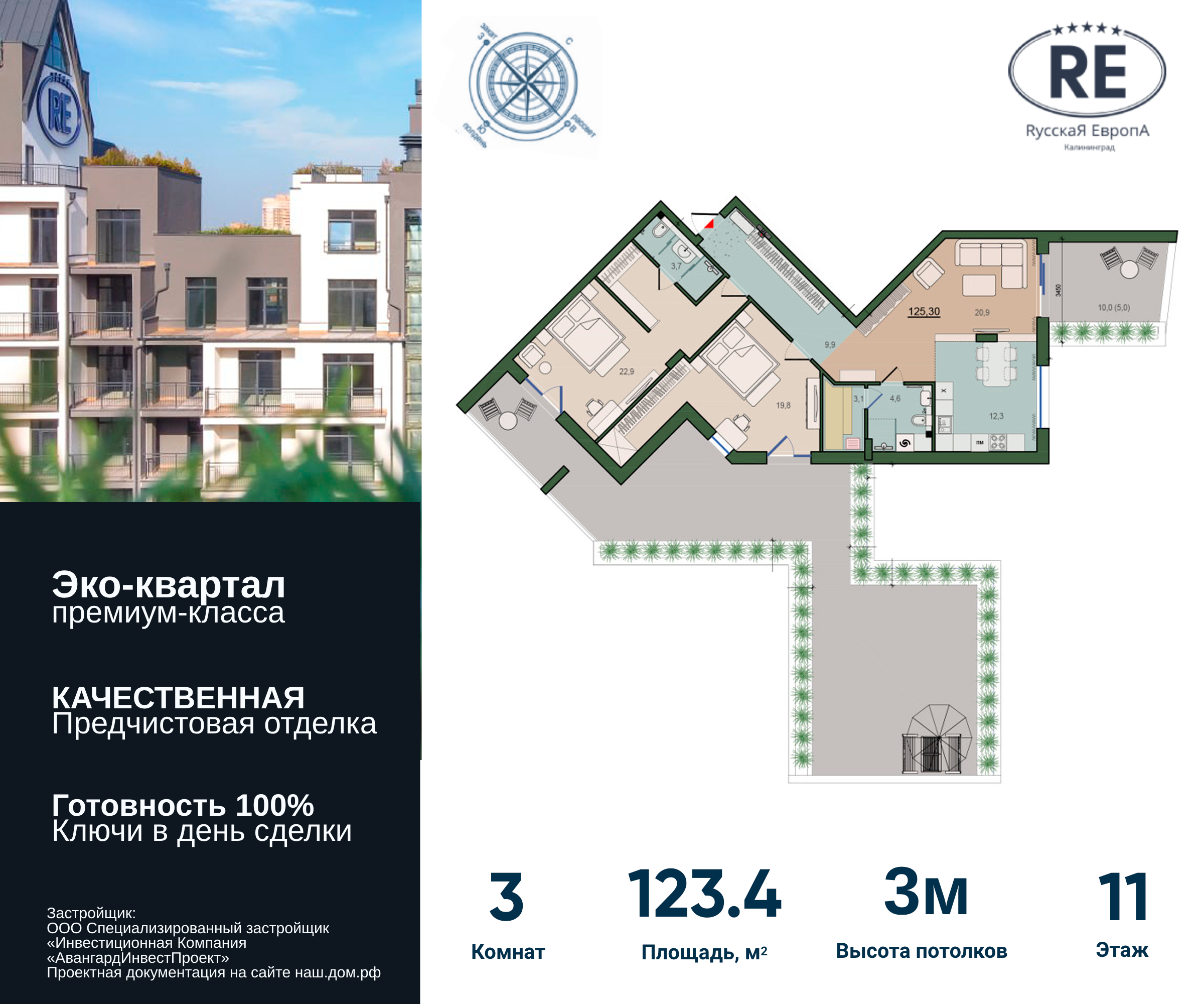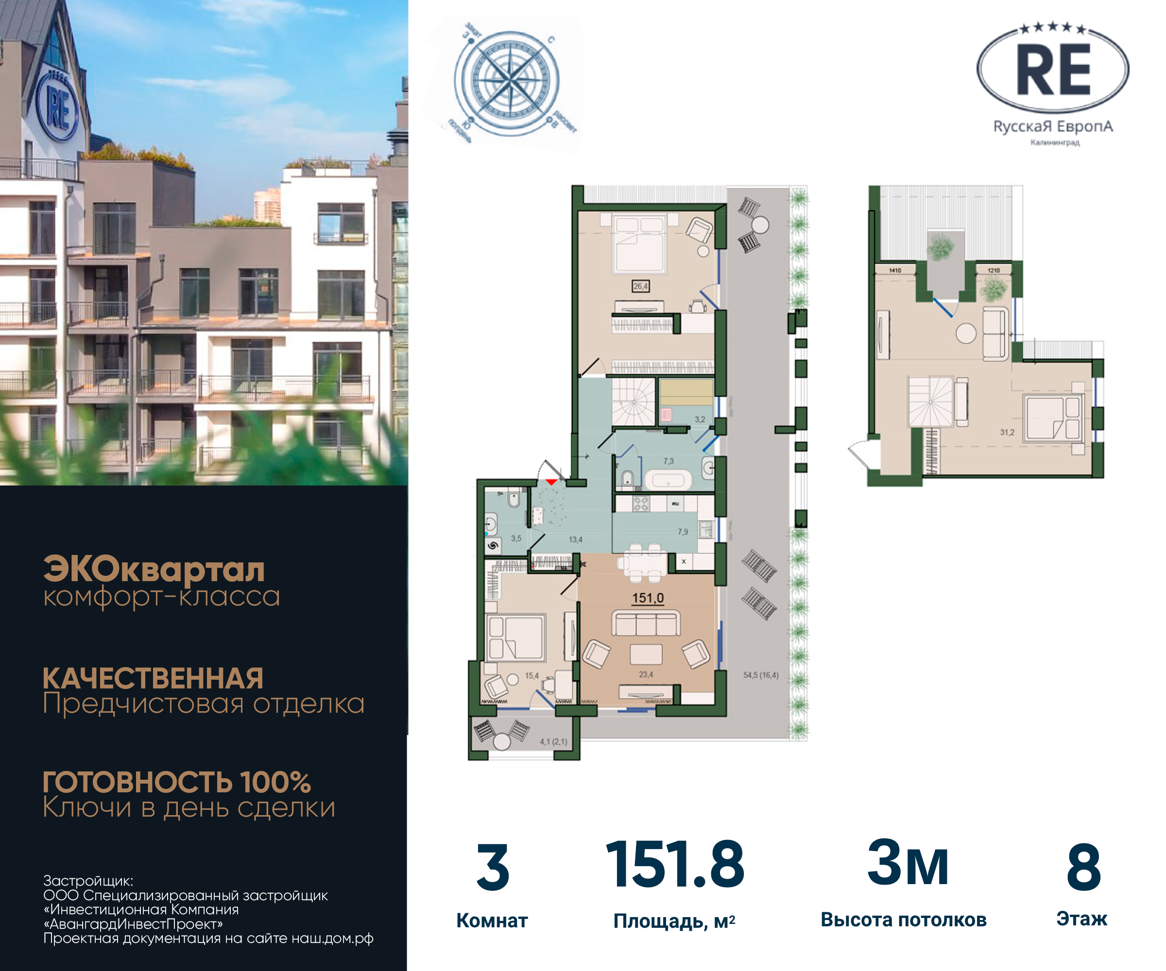 | 3-комн | от 123 м² до 152 м² | от 22,83 млн ₽ | 2 |