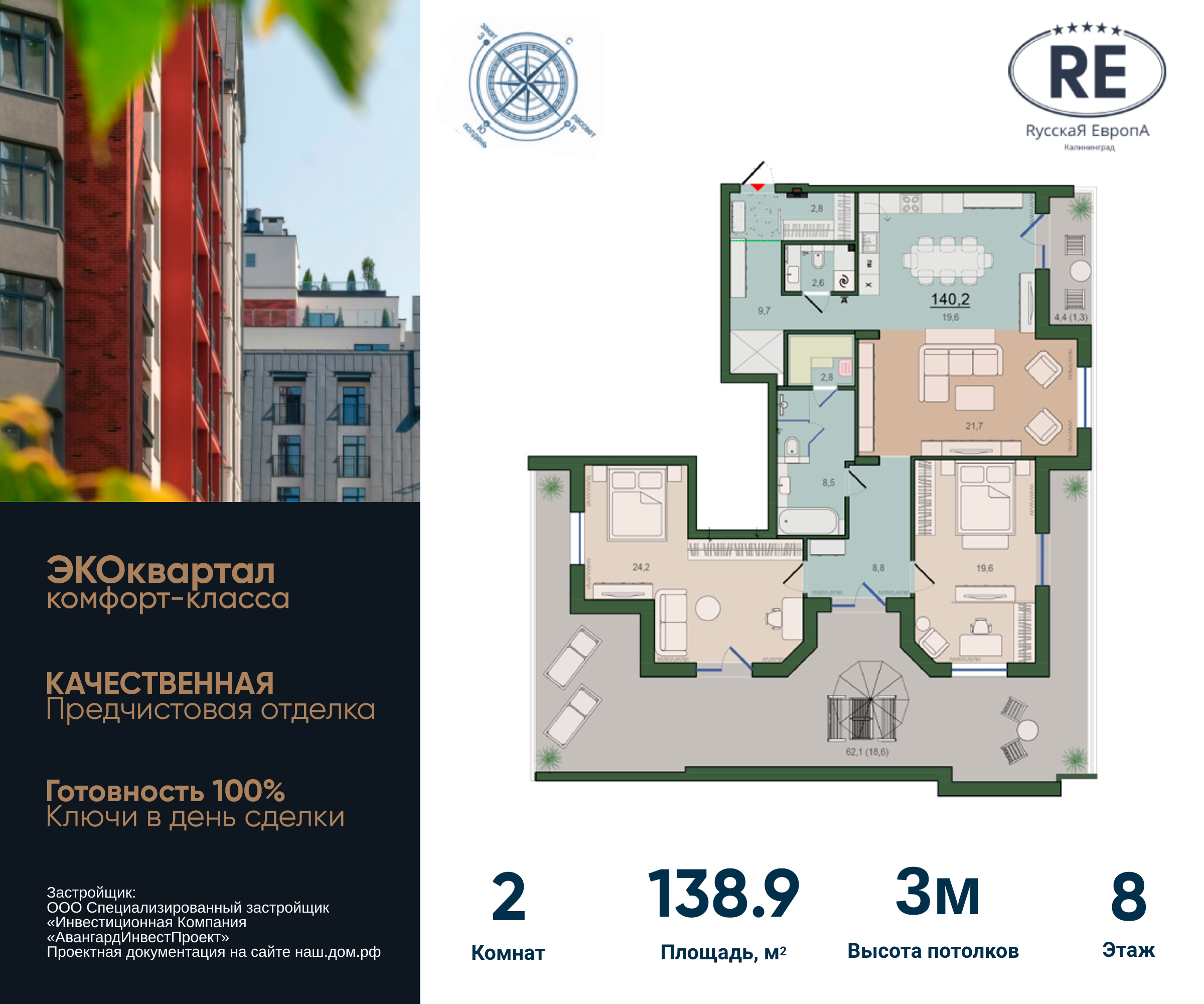 | 2-комн | от 90 м² до 139 м² | от 20,92 млн ₽ | 4 |