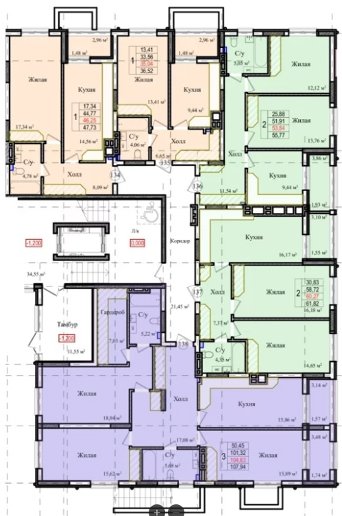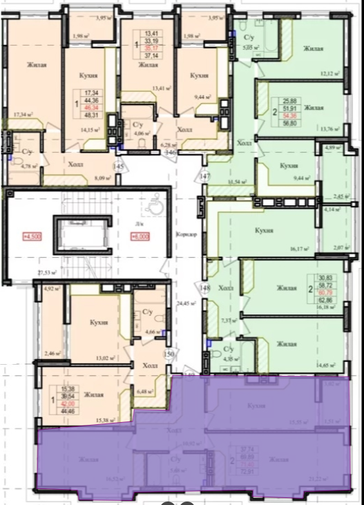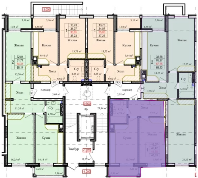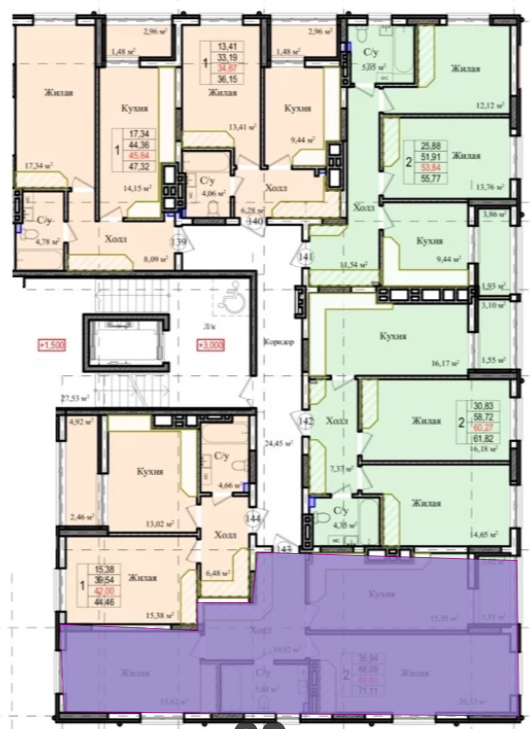 | 1-комн | от 40 м² до 45 м² | от 4,46 млн ₽ | 3 |