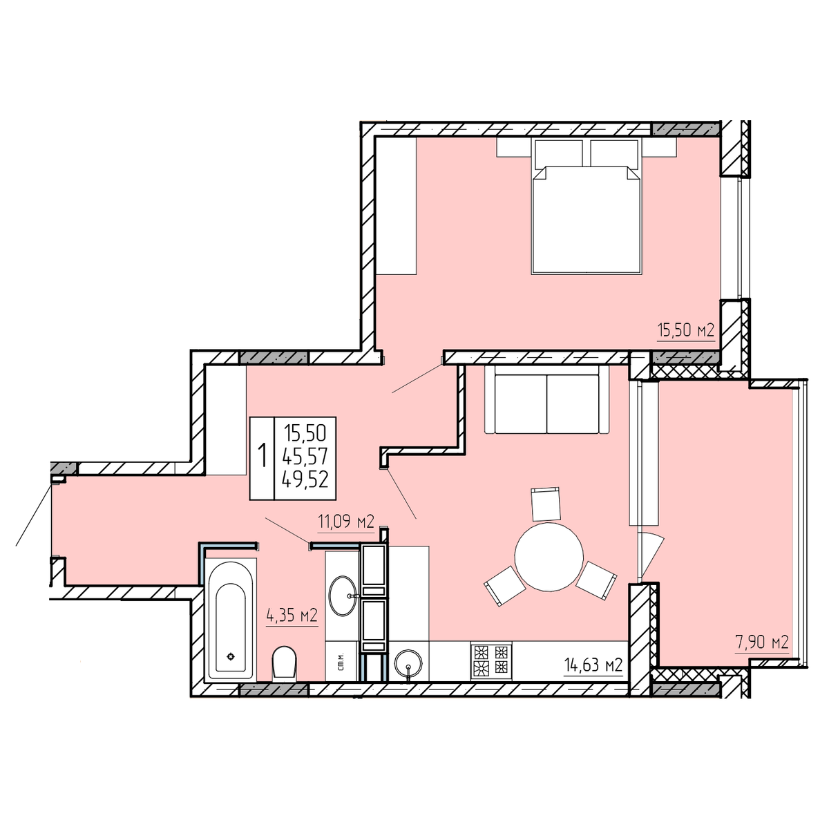 | 1-комн | от 48 м² до 50 м² | от 5,30 млн ₽ | 28 |