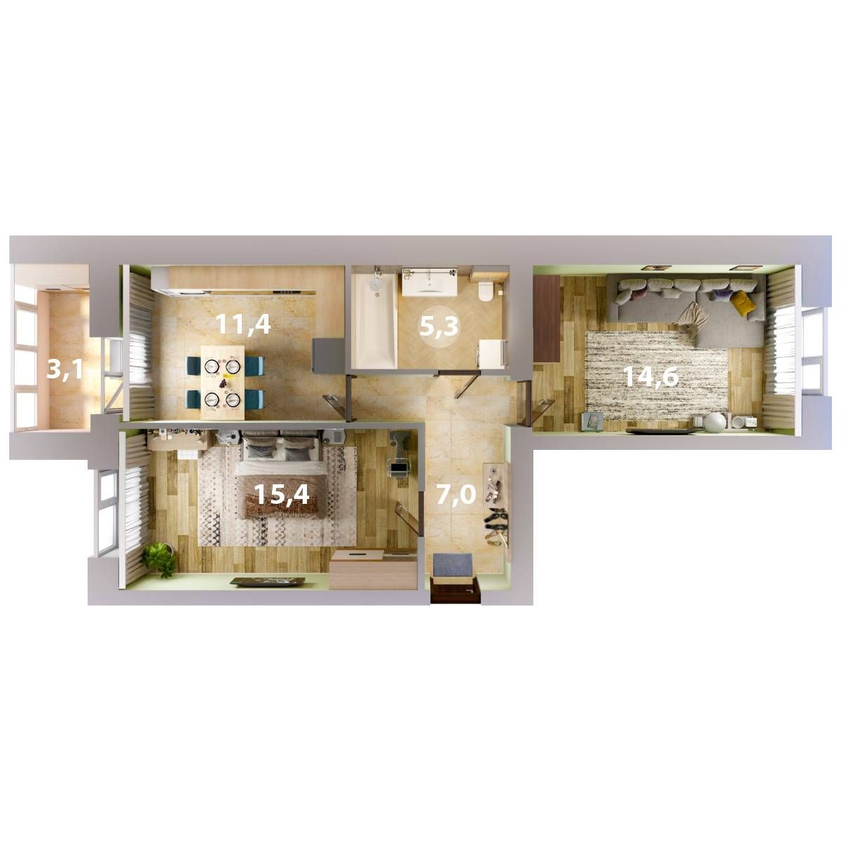 | 2-комн | от 55 м² до 60 м² | от 6,67 млн ₽ | 6 |
