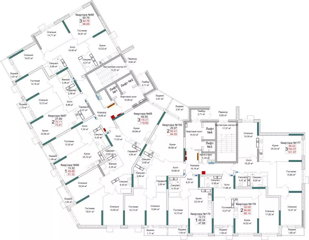| 3-комн | от 119 м² до 119 м² | от 23,10 млн ₽ | 4 |