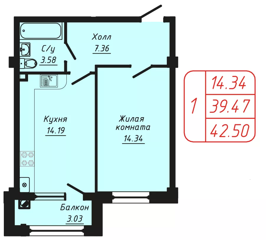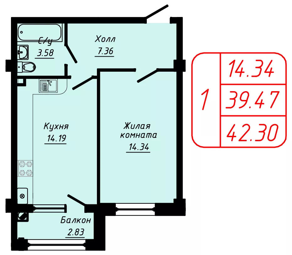 | 1-комн | от 40 м² до 60 м² | от 6,67 млн ₽ | 173 |