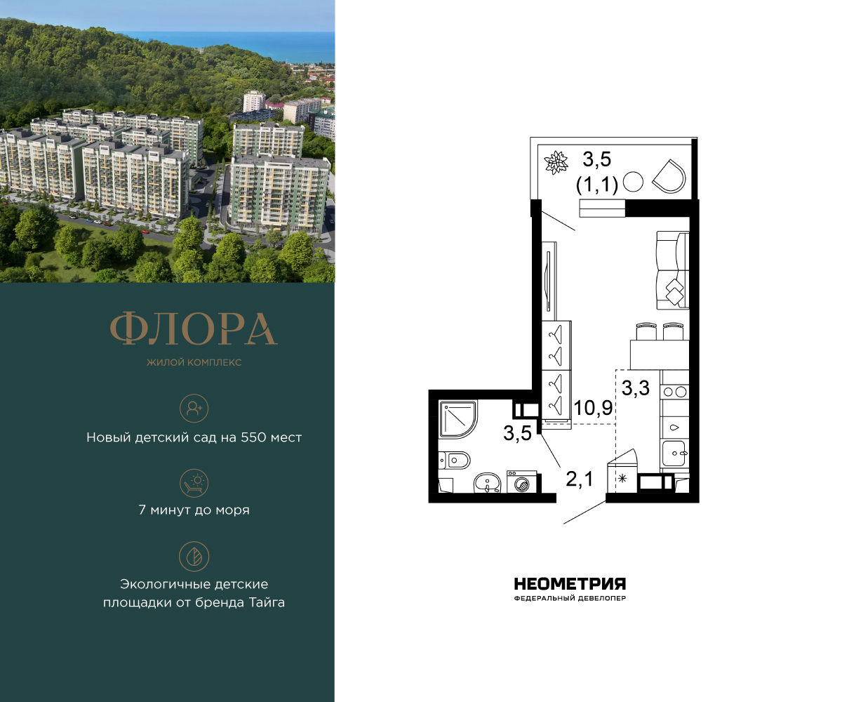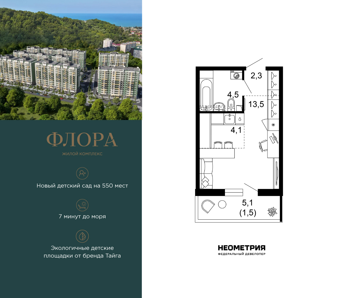 ЖК «Флора» от федерального девелопера «Неометрия». Это жилой комплекс комфорт-класса в самом зеленом районе Сочи. При проектировании постарались максимально сохранить окружающую флору и фауну. Теплое...