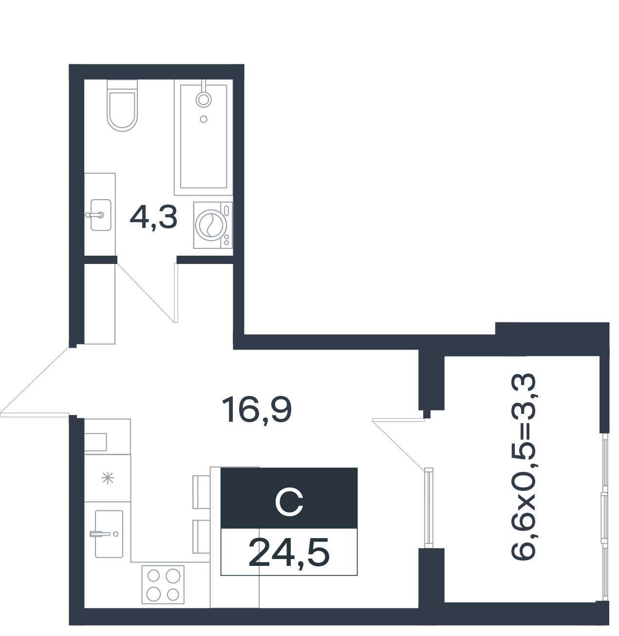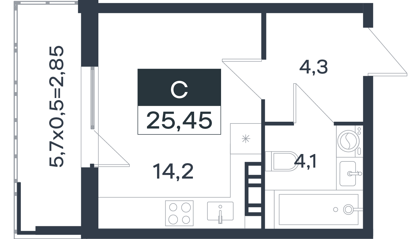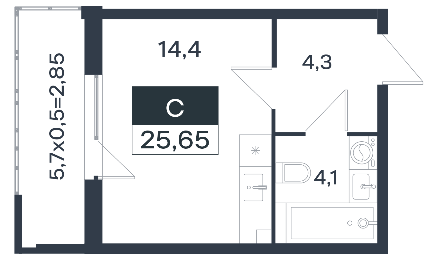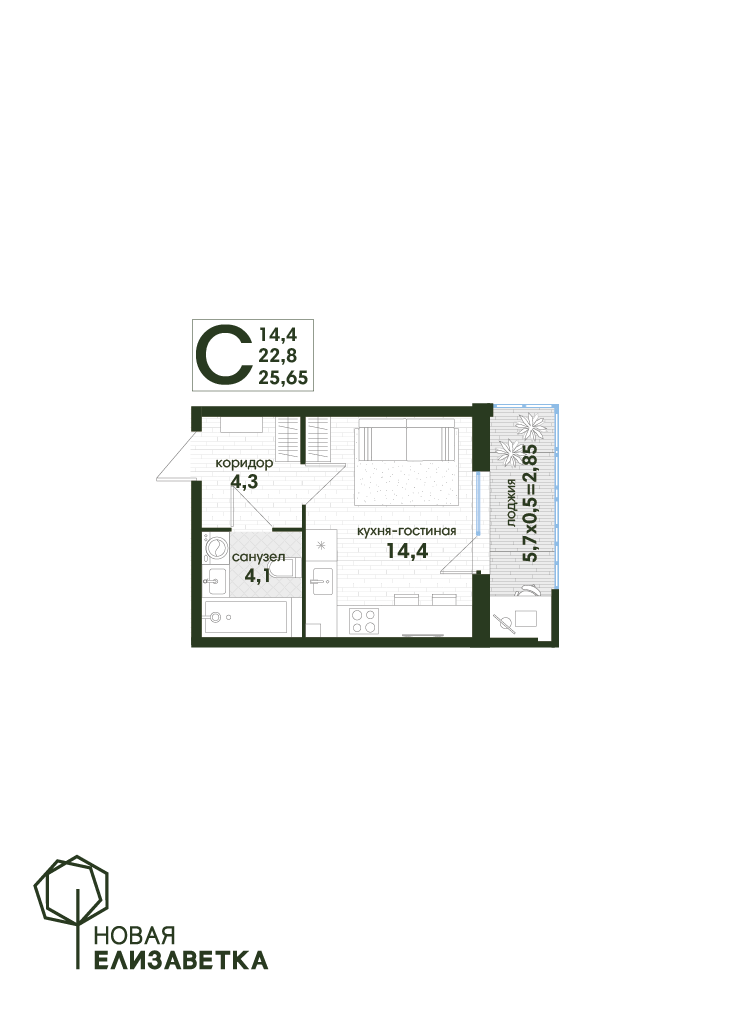 | Студии | от 24 м² до 28 м² | от 4,14 млн ₽ | 13 |