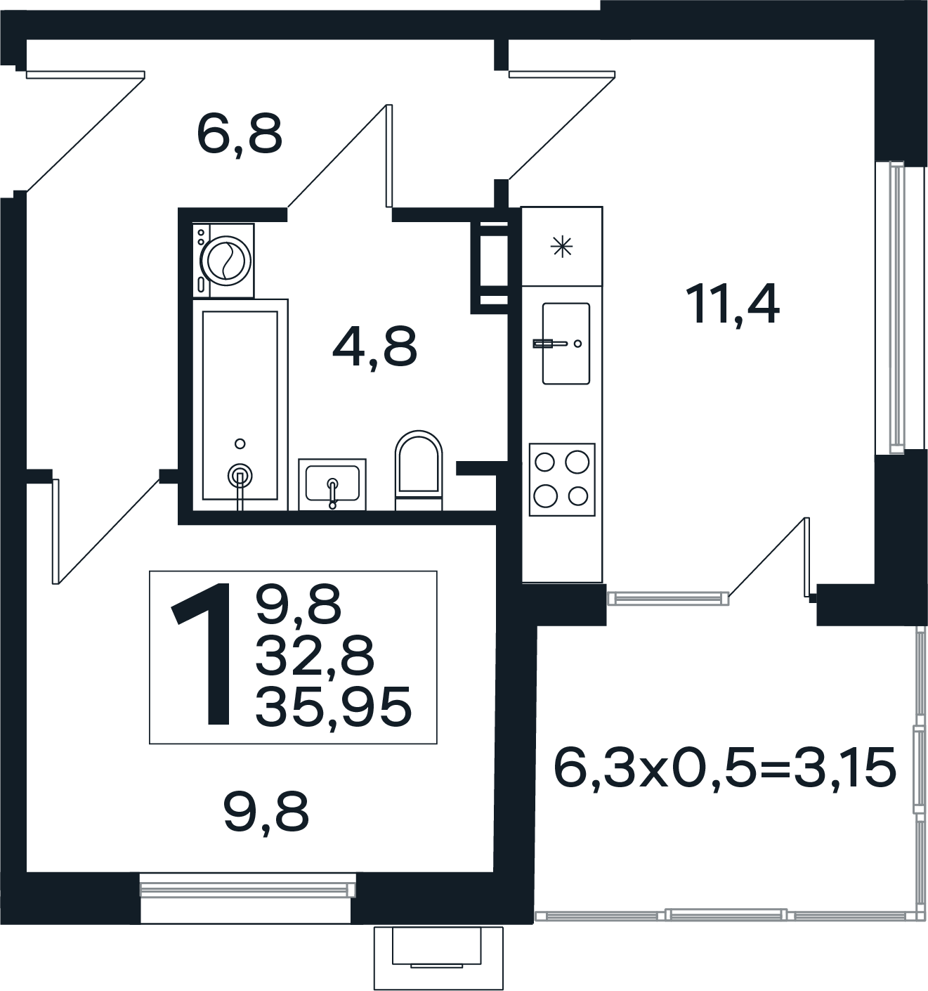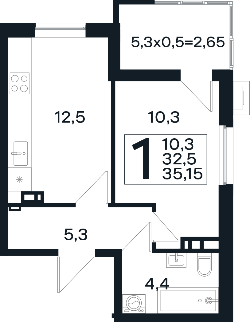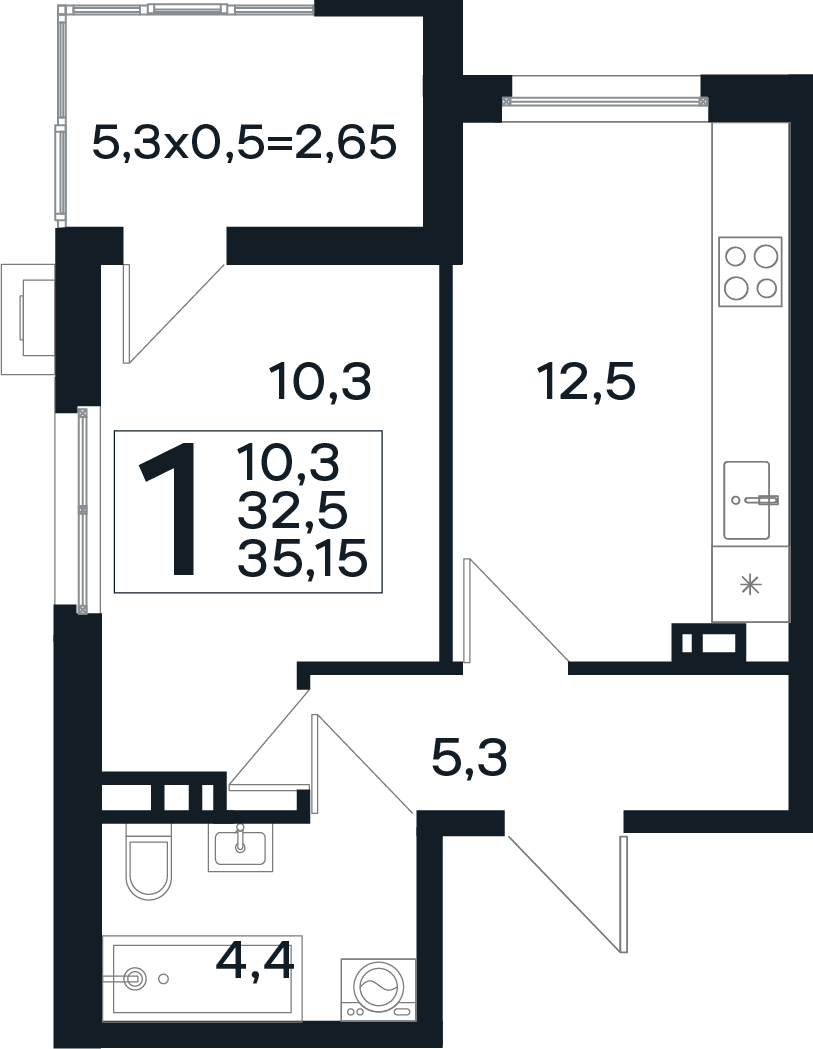 | 1-комн | от 35 м² до 45 м² | от 5,50 млн ₽ | 63 |