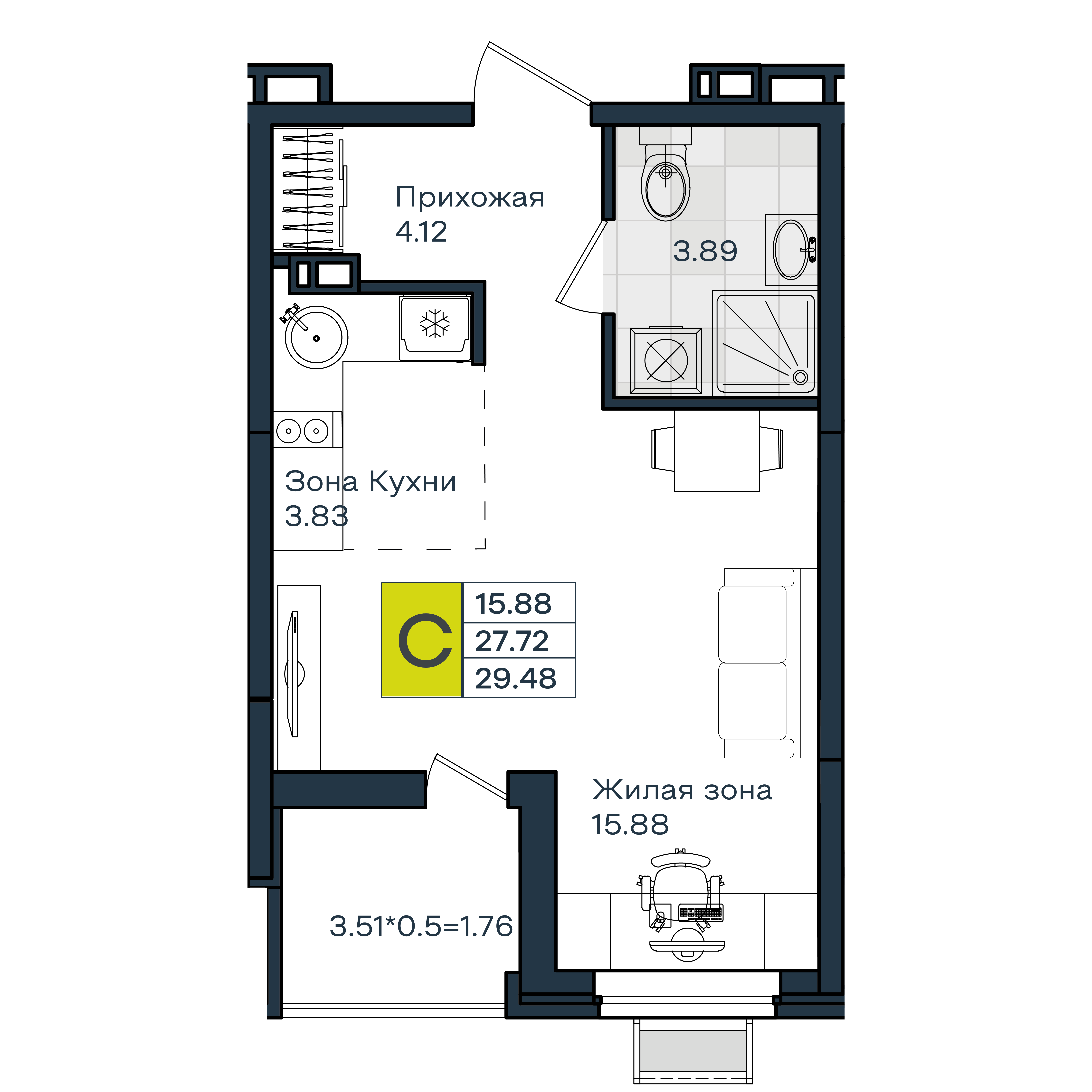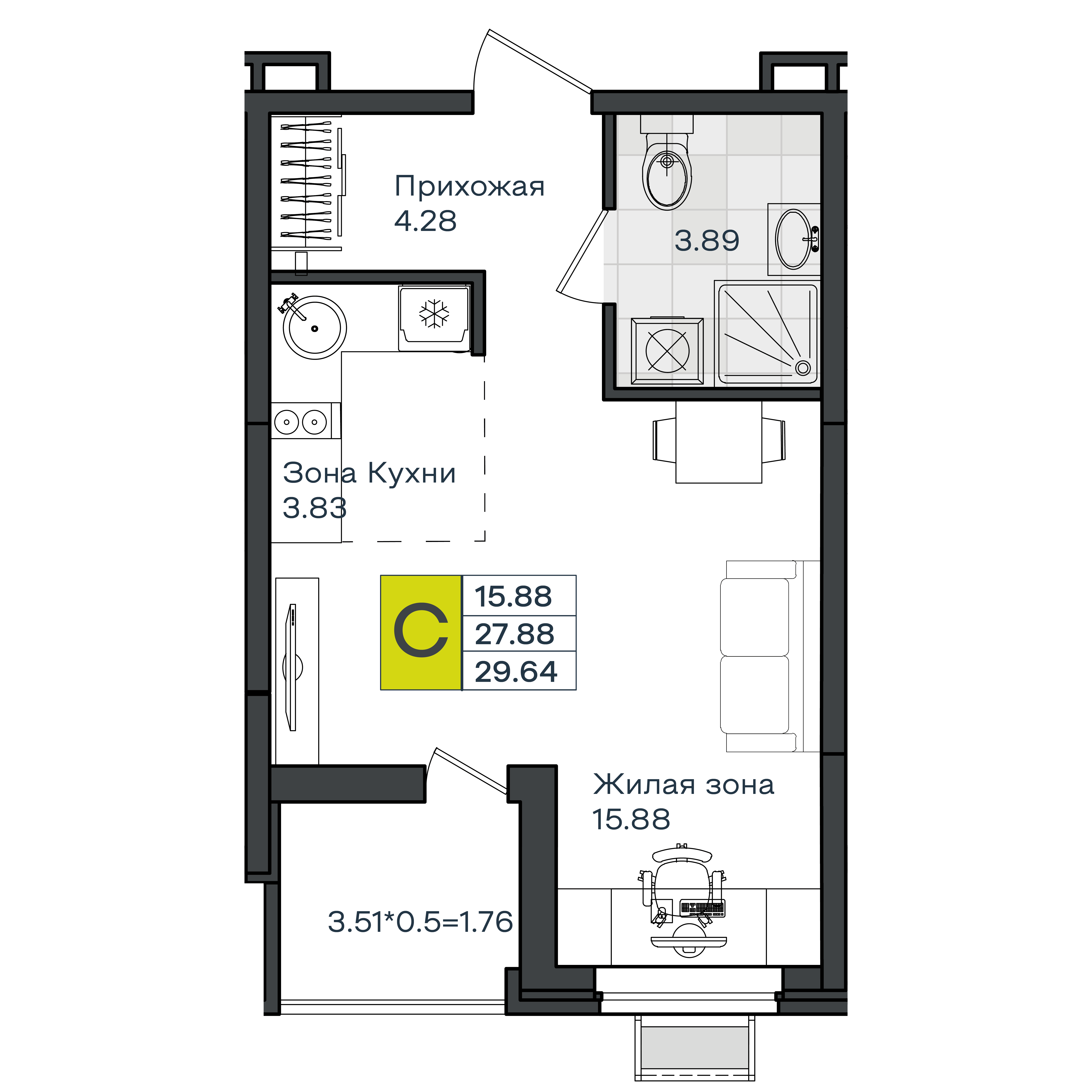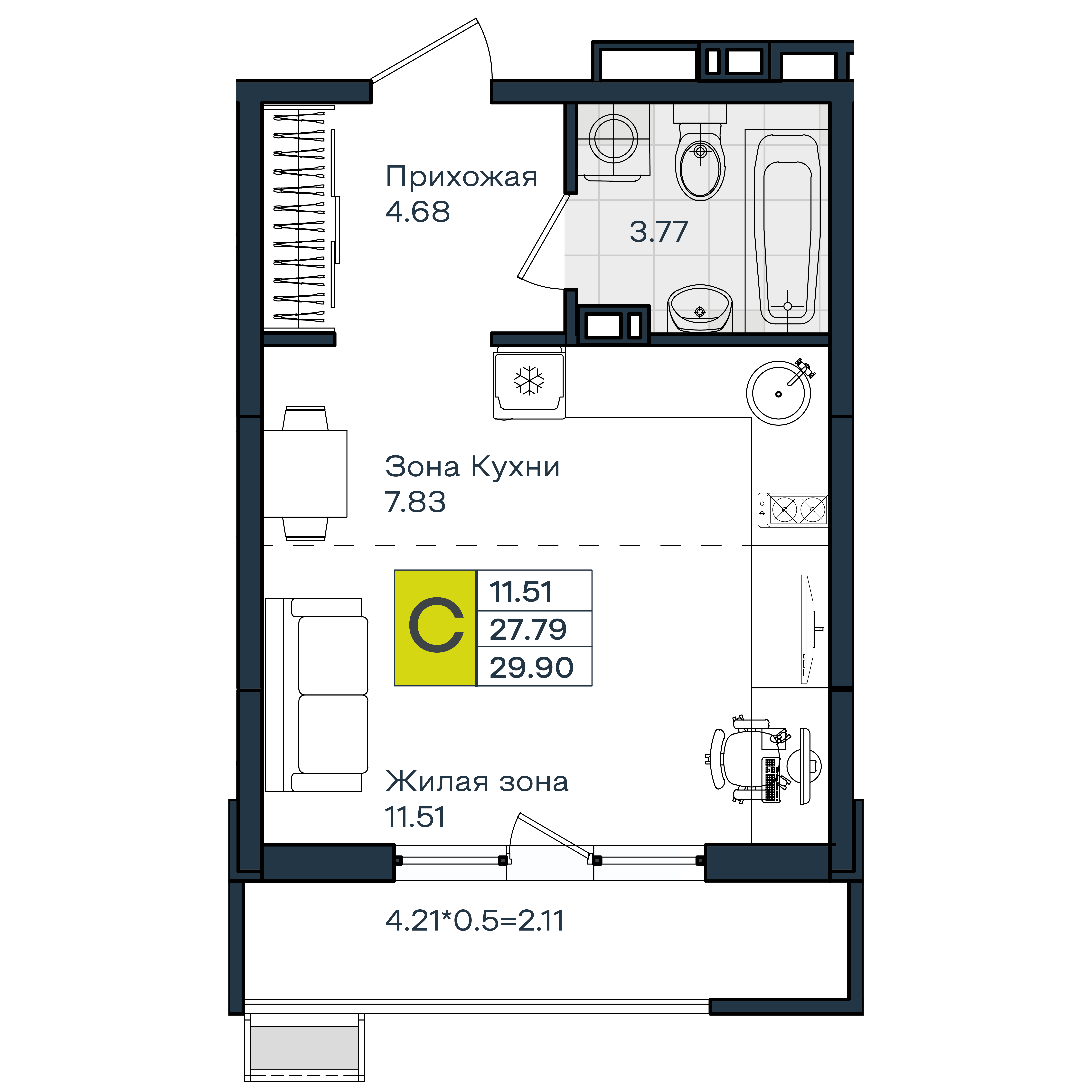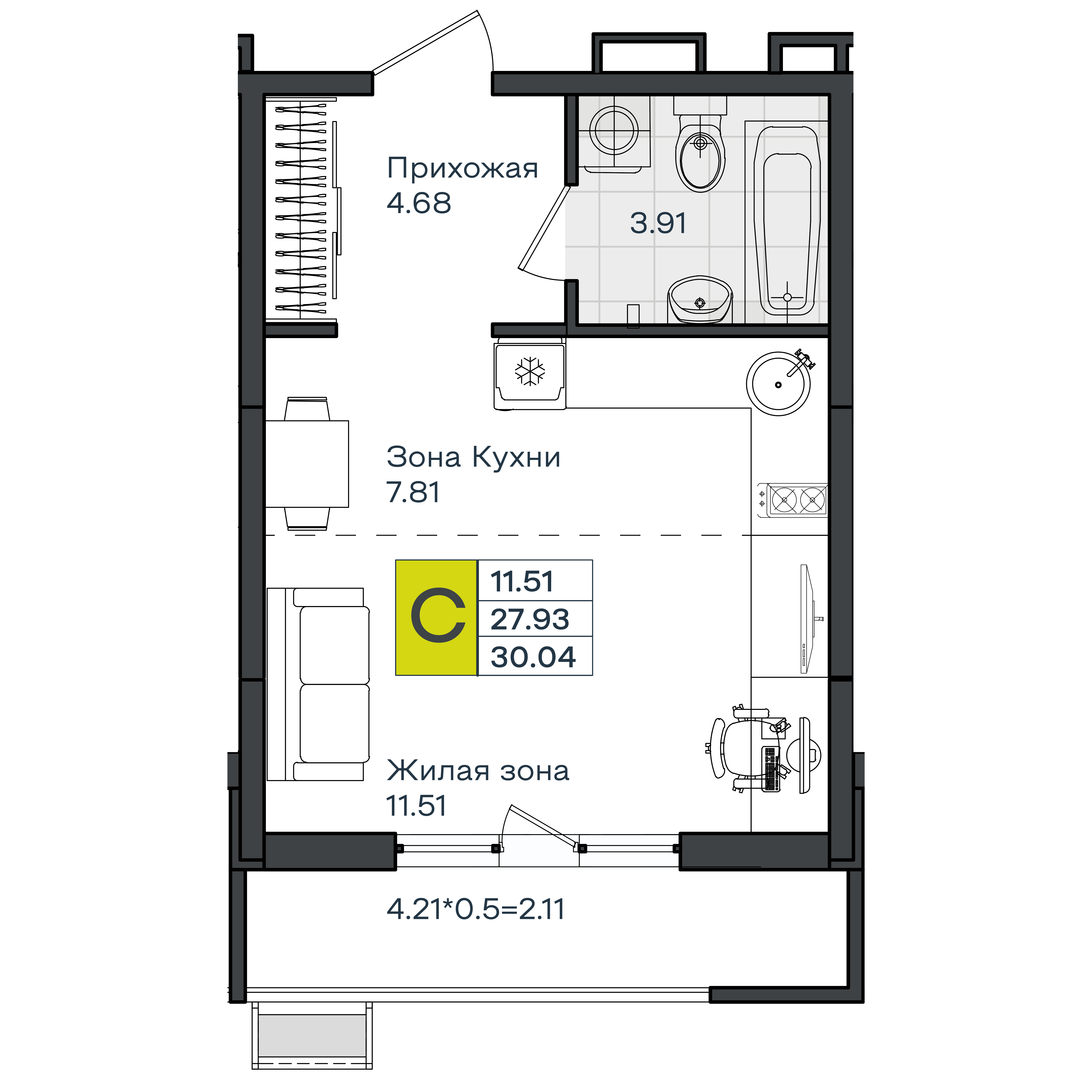 | Студии | от 29 м² до 30 м² | от 4,22 млн ₽ | 28 |