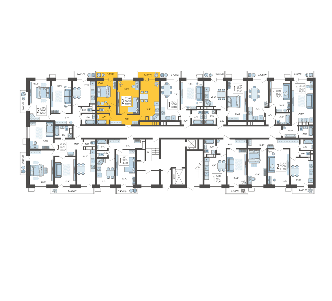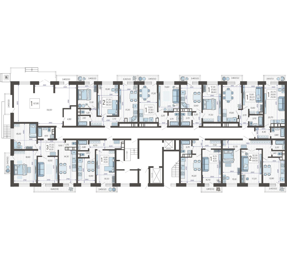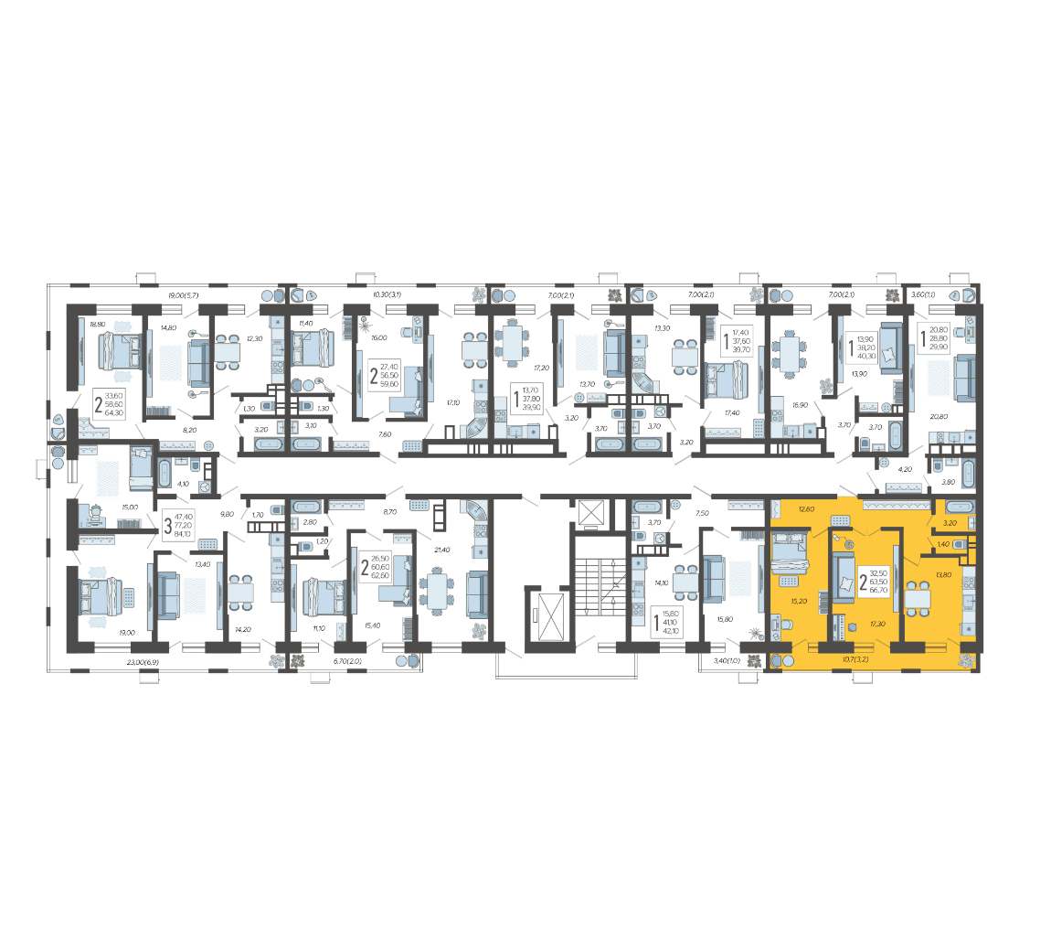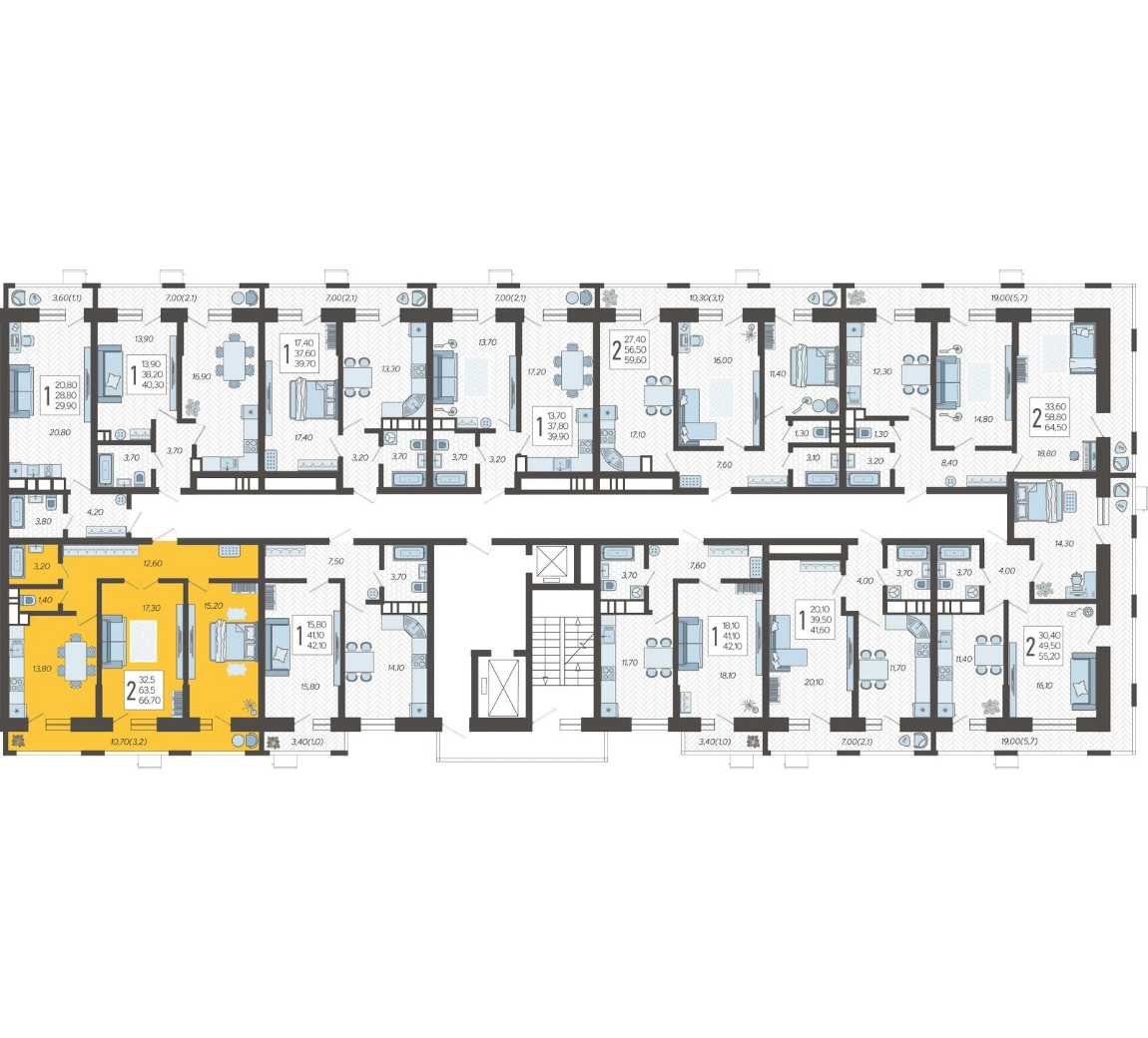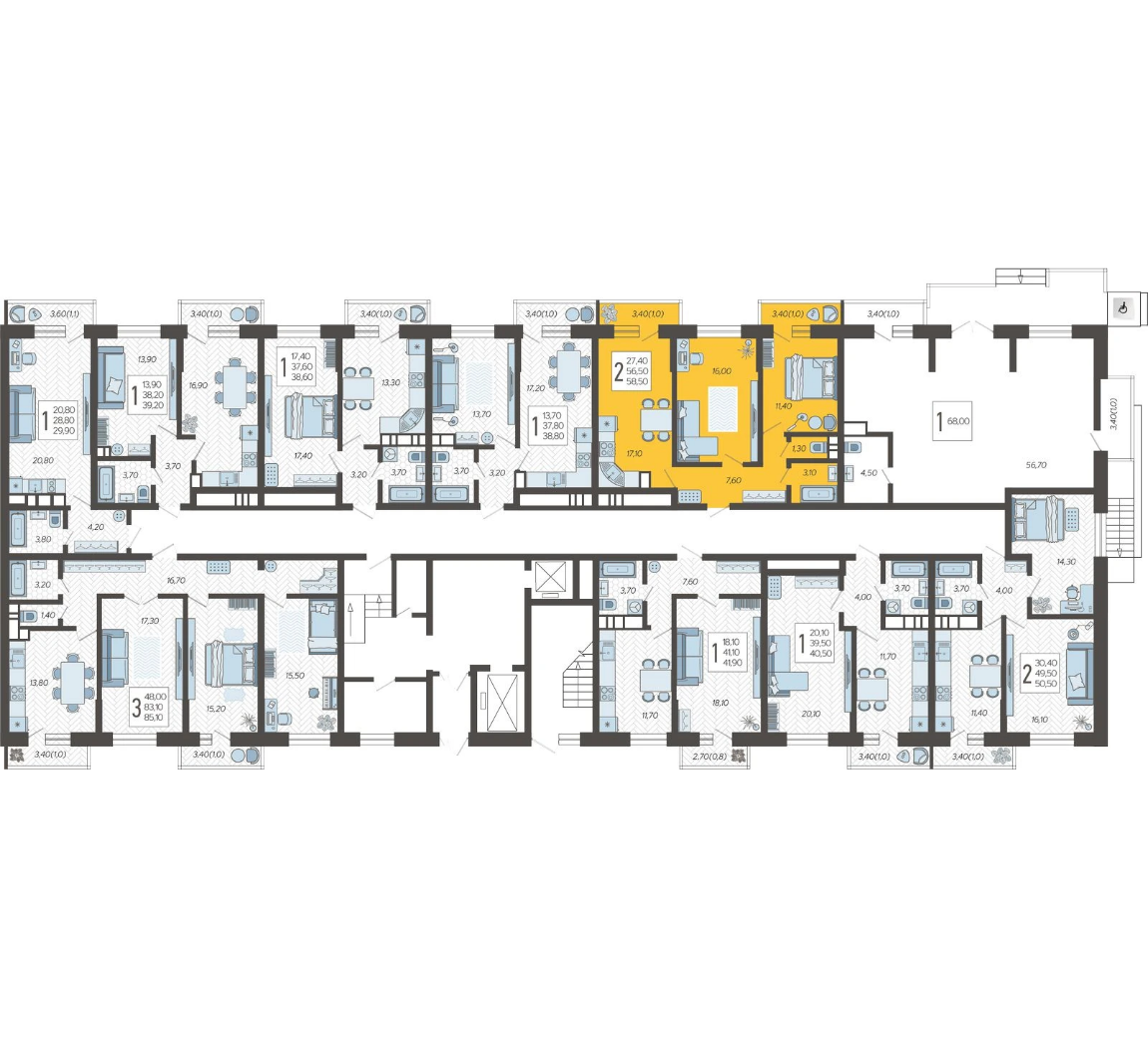 | 2-комн | от 59 м² до 68 м² | от 10,45 млн ₽ | 54 |