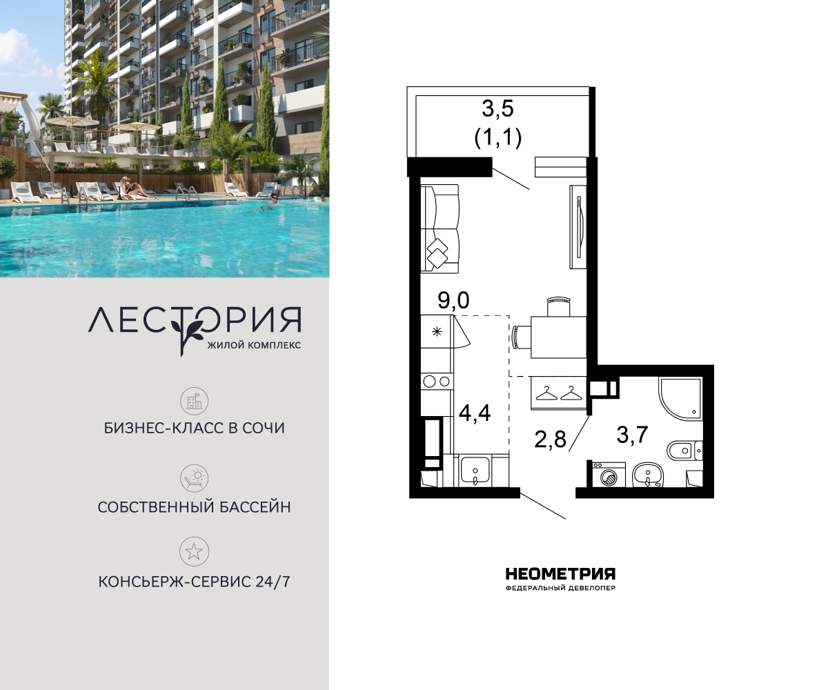Жилой комплекс бизнес-класса «Лестория» с собственной аквазоной площадью 473 квадратных метра с двумя подогреваемыми бассейнами. Аквазона объединяет взрослый и детский бассейны. В welcome-zone к...