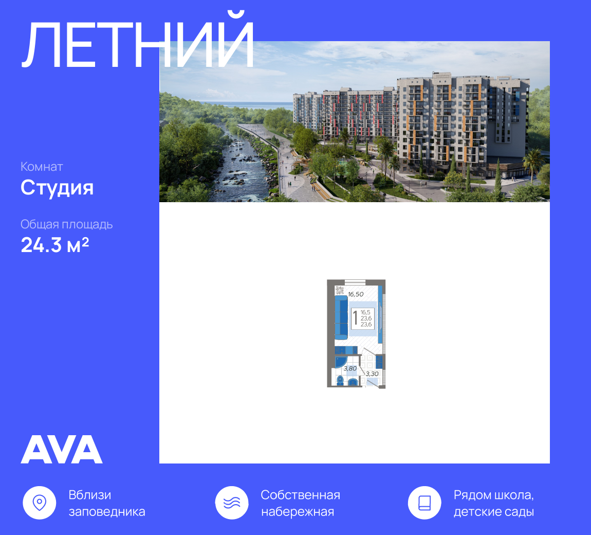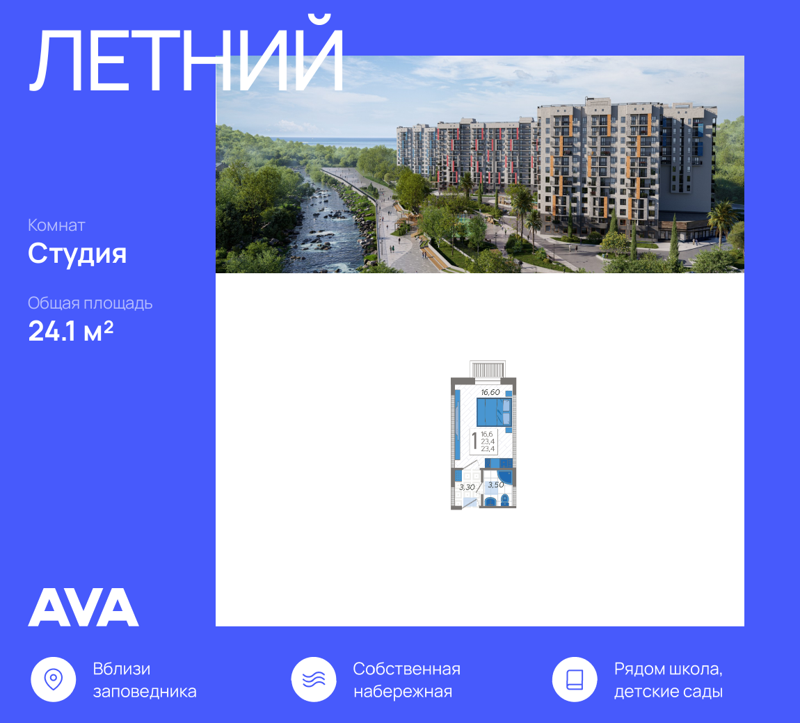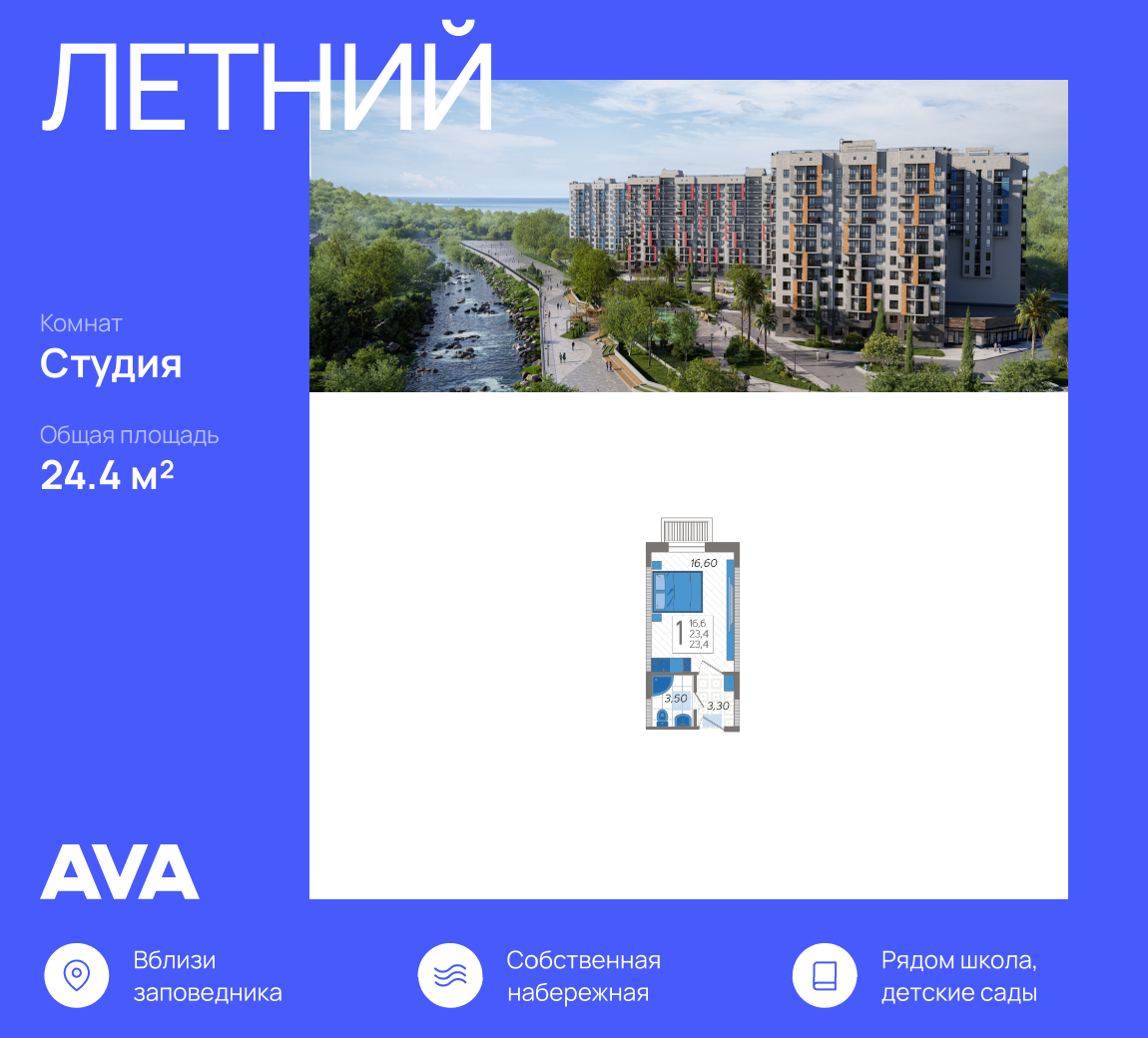 ЖК “Летний” - это комплексная застройка из семи 12-этажных домов, который находится в долине реки Кудепста, с собственной набережной, видом из окон на море и горы, многоуровневым паркингом с...