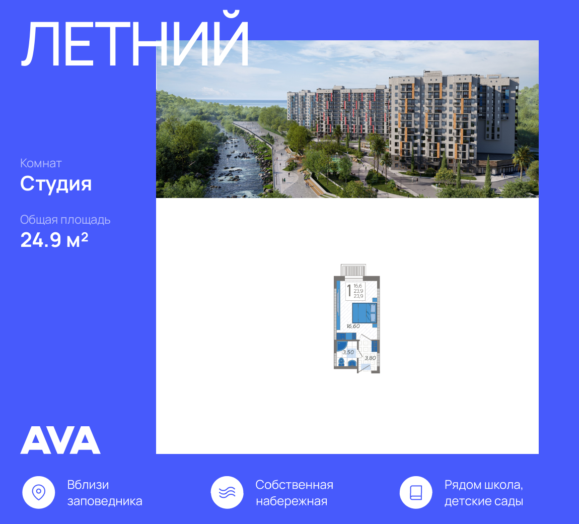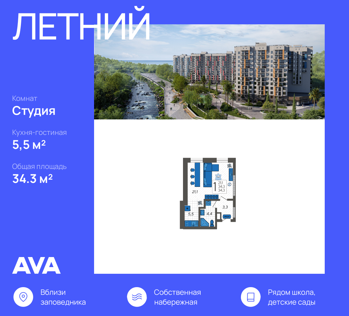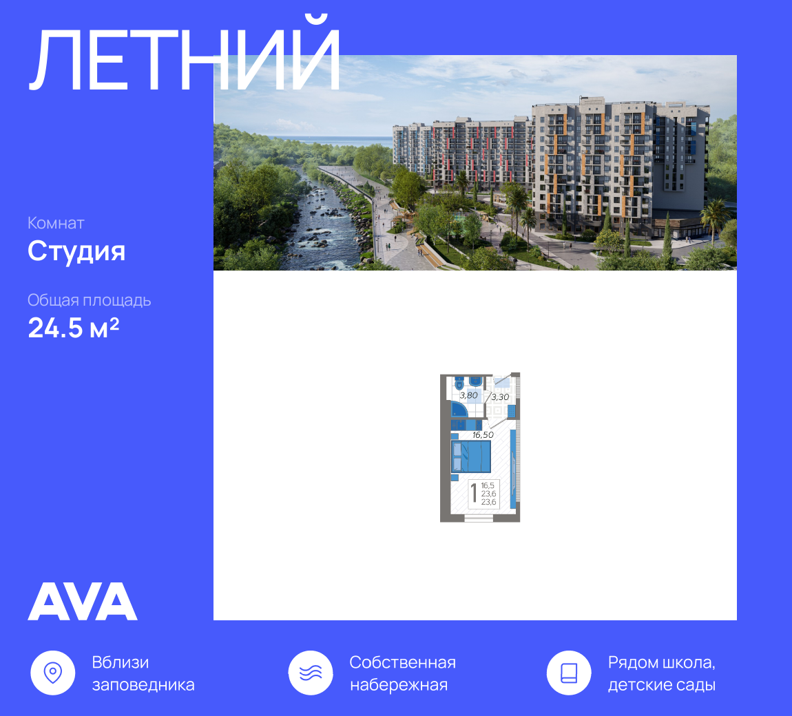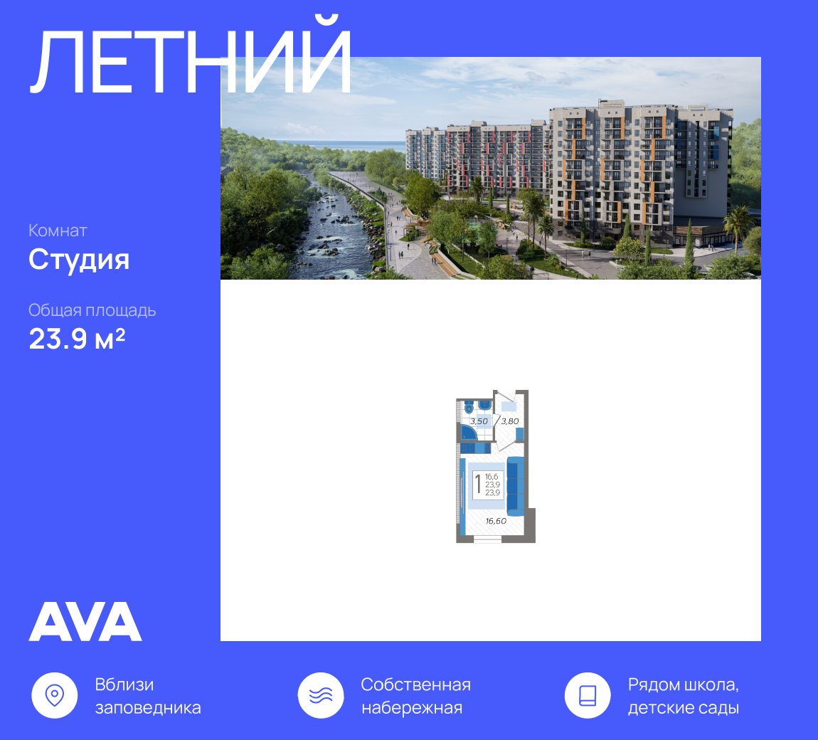 ЖК “Летний” - это комплексная застройка из семи 12-этажных домов, который находится в долине реки Кудепста, с собственной набережной, видом из окон на море и горы, многоуровневым паркингом с...