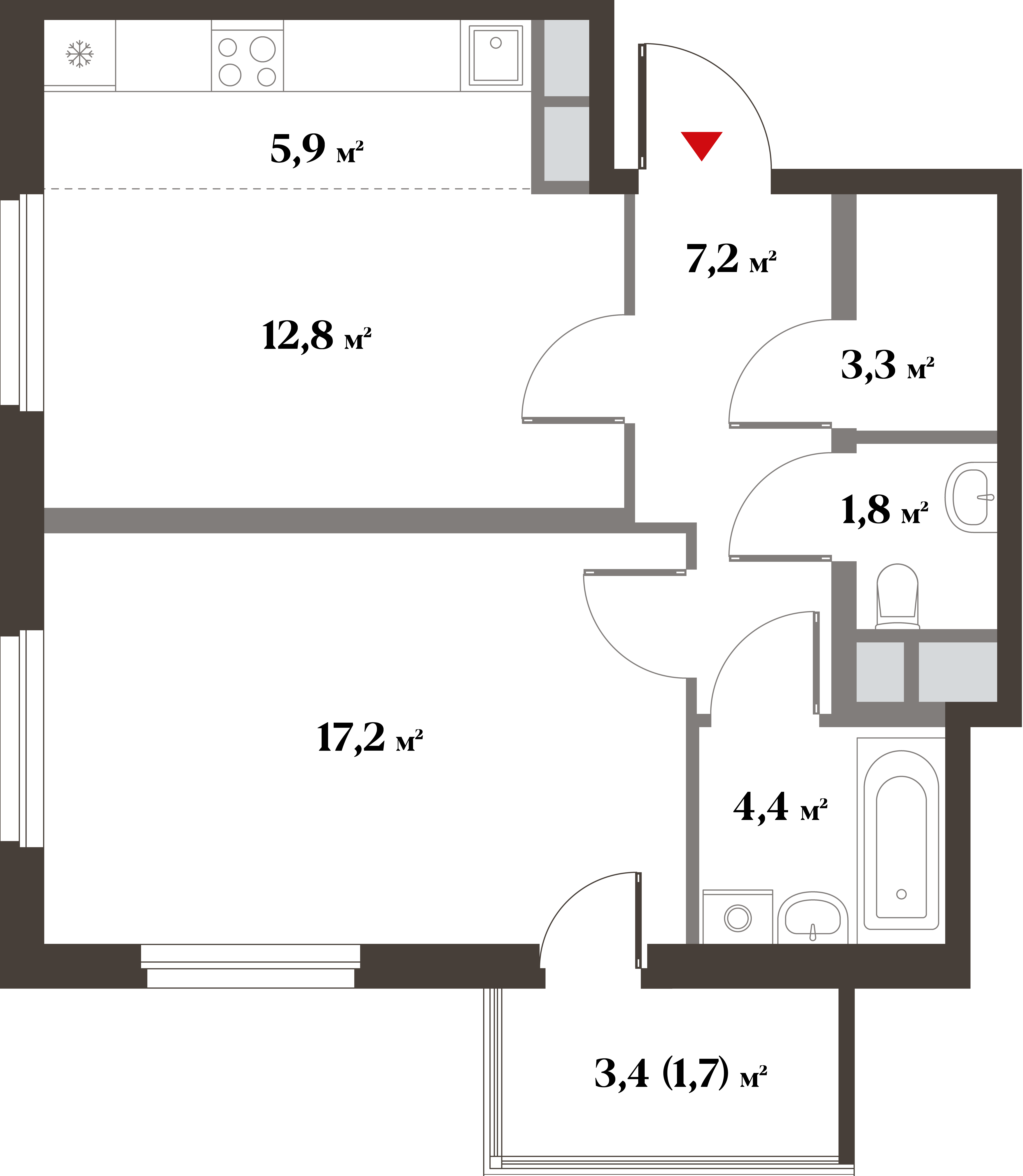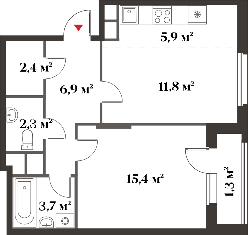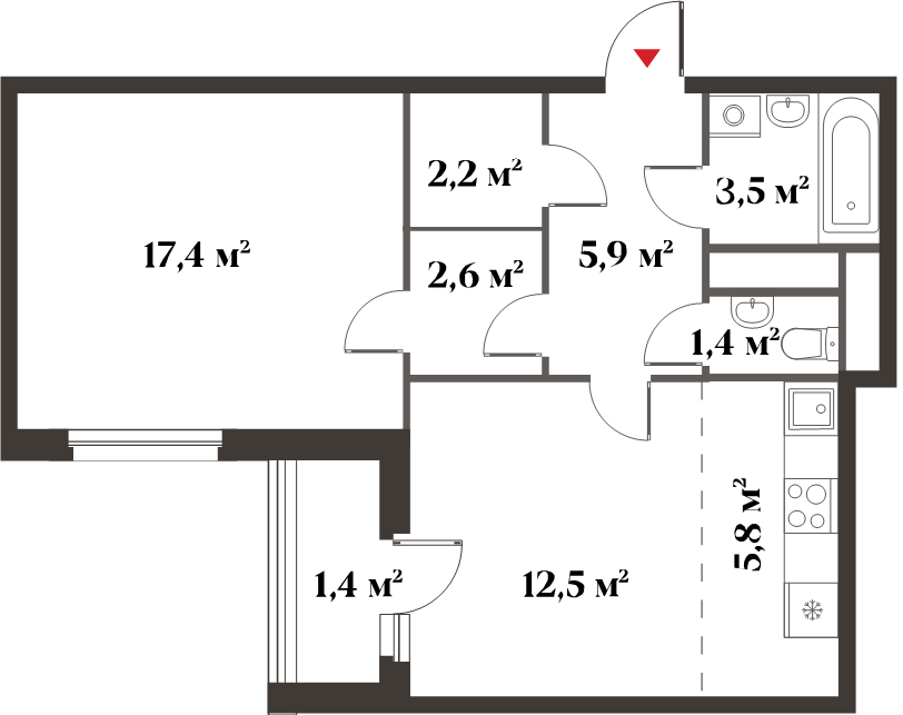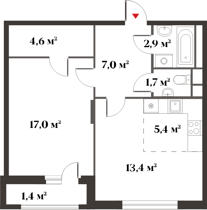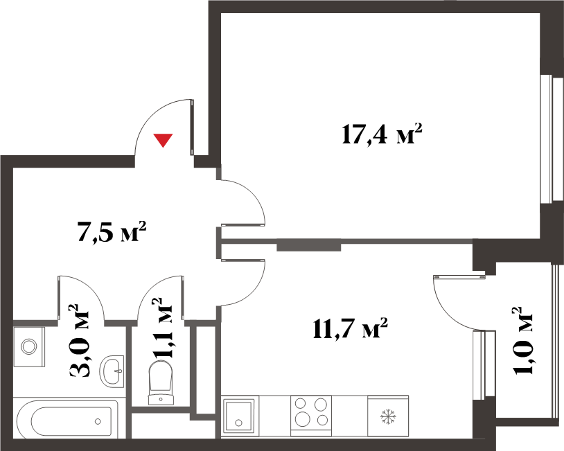 | 1-комн | от 38 м² до 45 м² | от 14,80 млн ₽ | 58 |