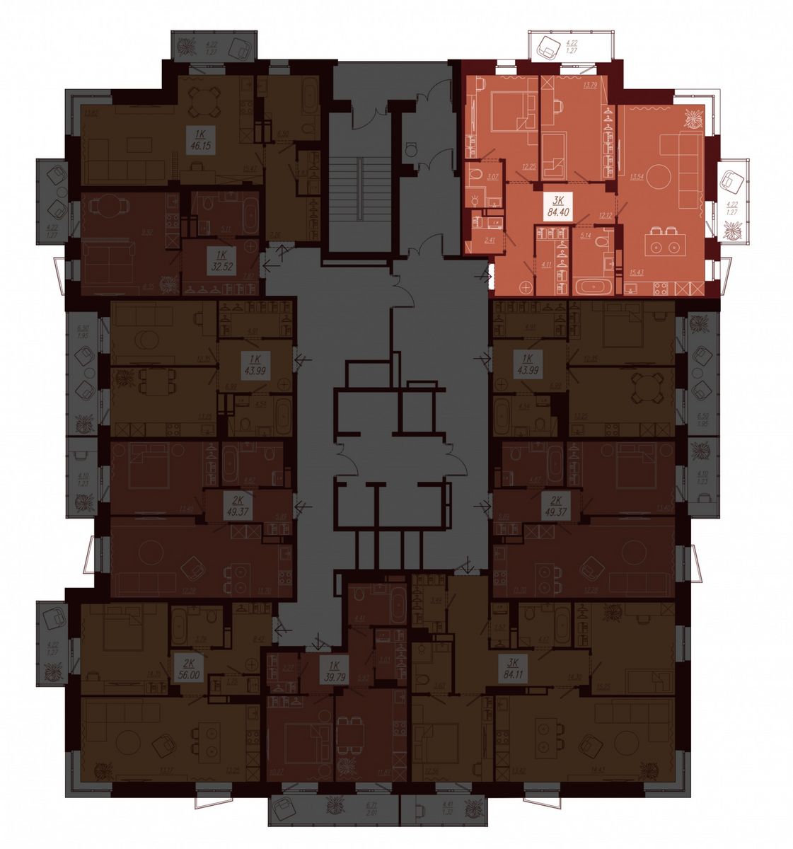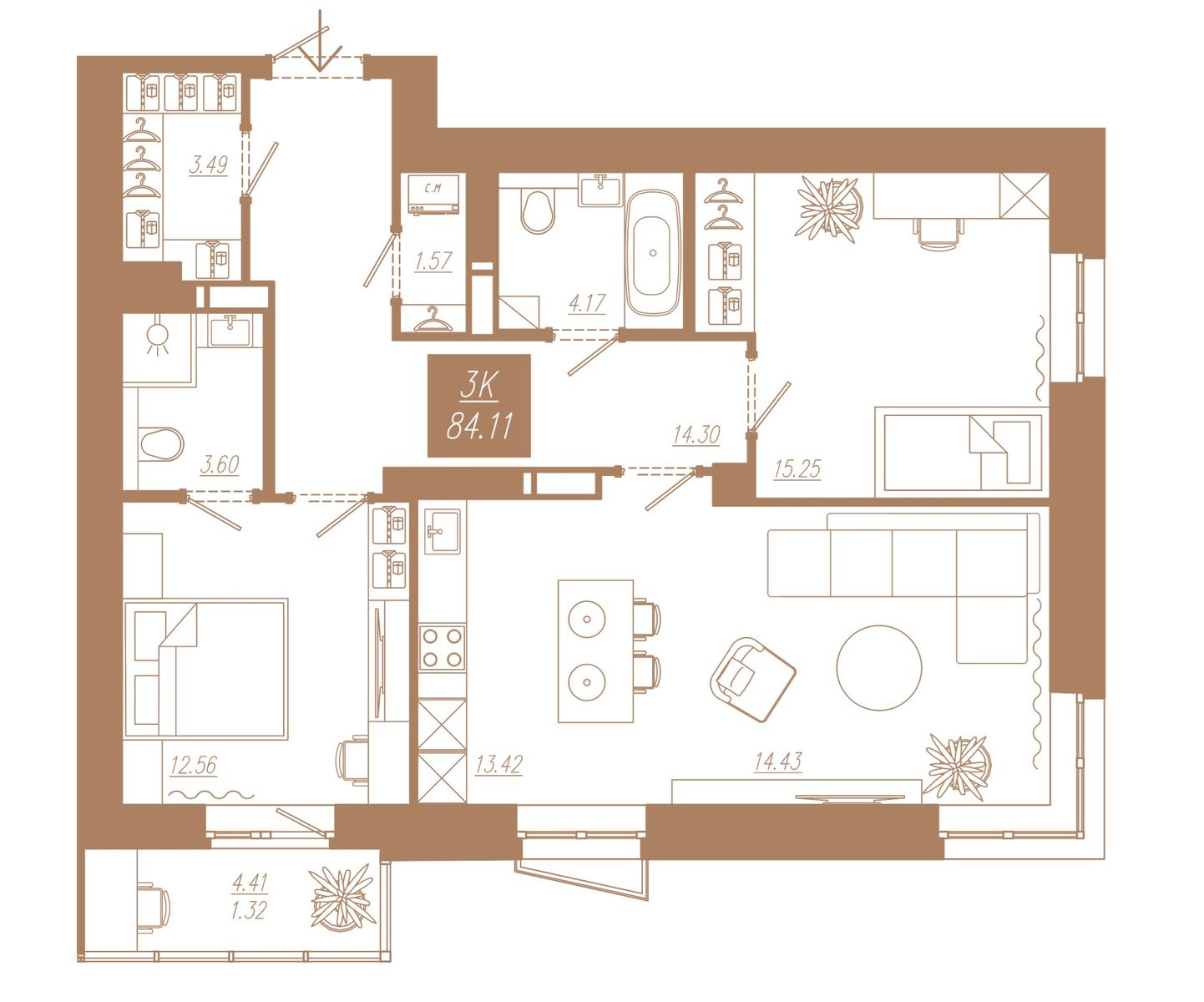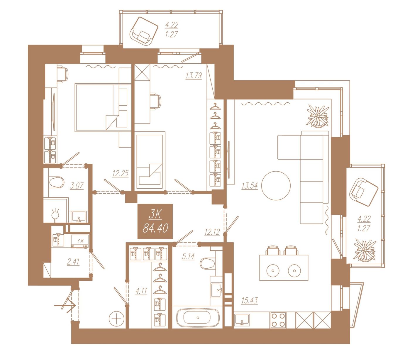 | 3-комн | от 84 м² до 84 м² | от 11,35 млн ₽ | 95 |