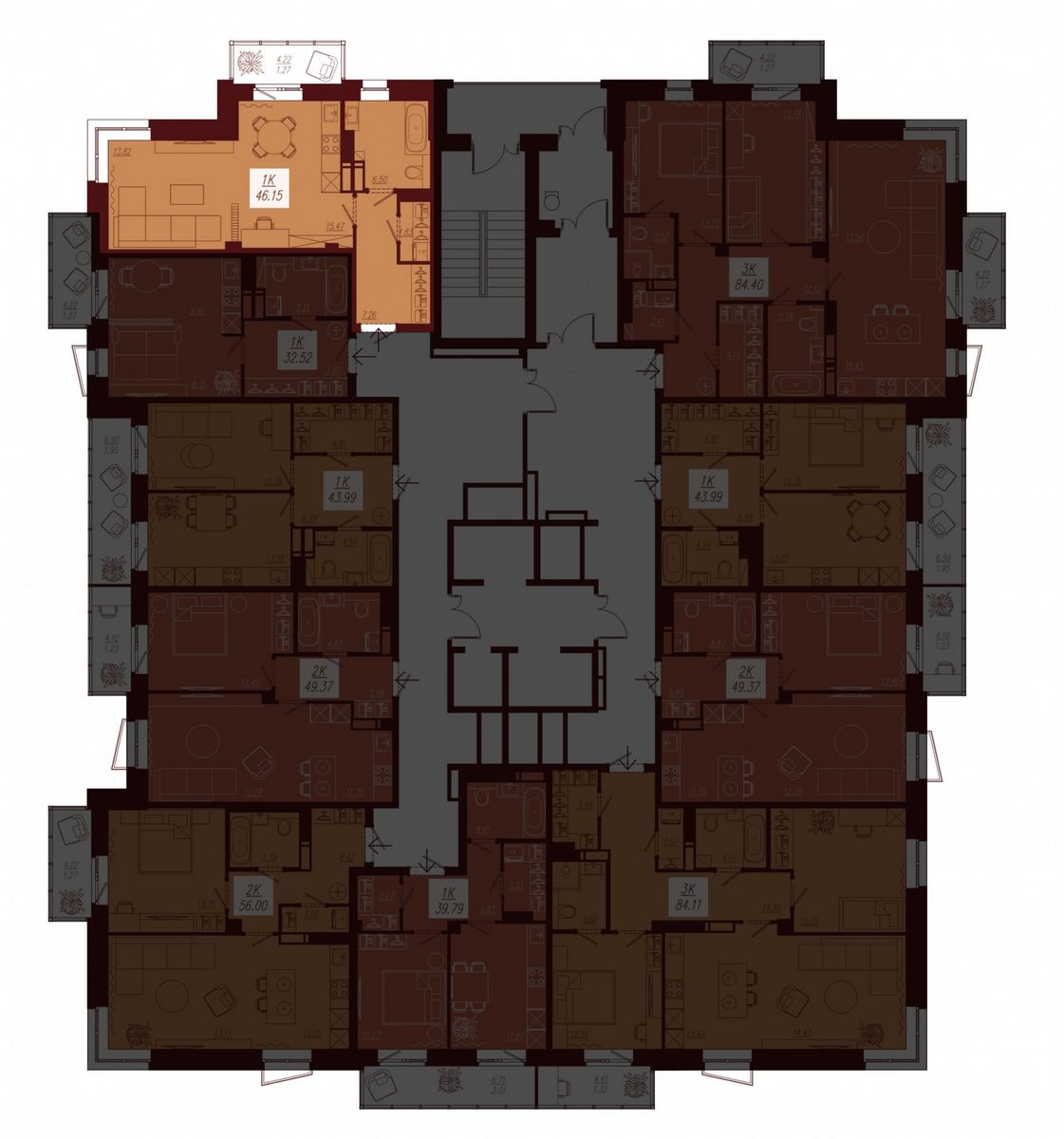 | 1-комн | от 33 м² до 46 м² | от 6,02 млн ₽ | 133 |