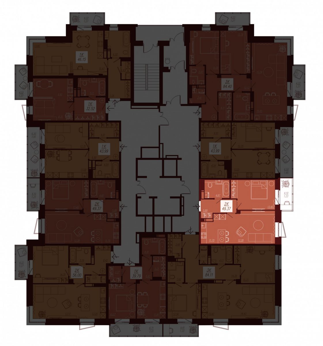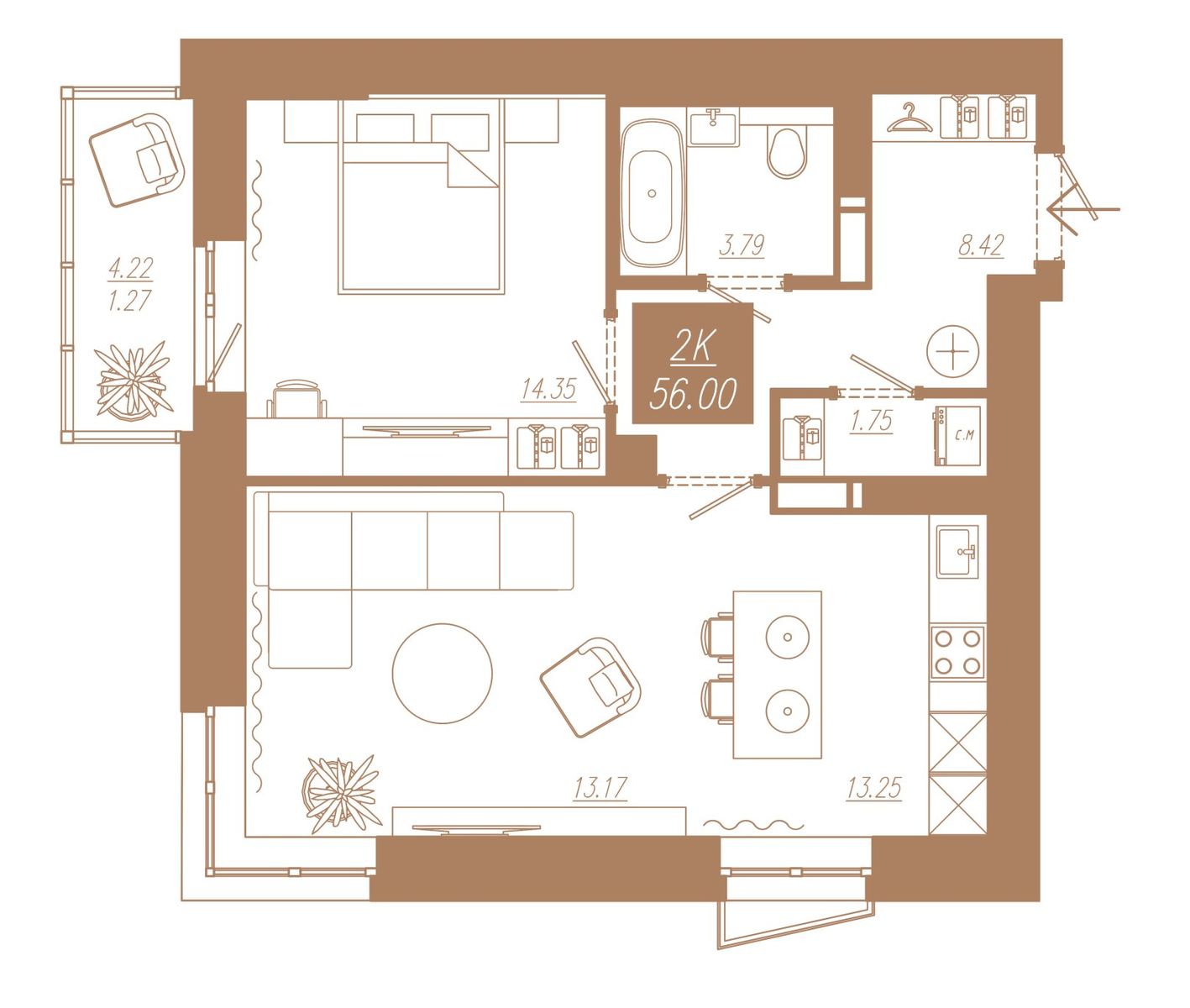 | 2-комн | от 49 м² до 56 м² | от 7,90 млн ₽ | 82 |