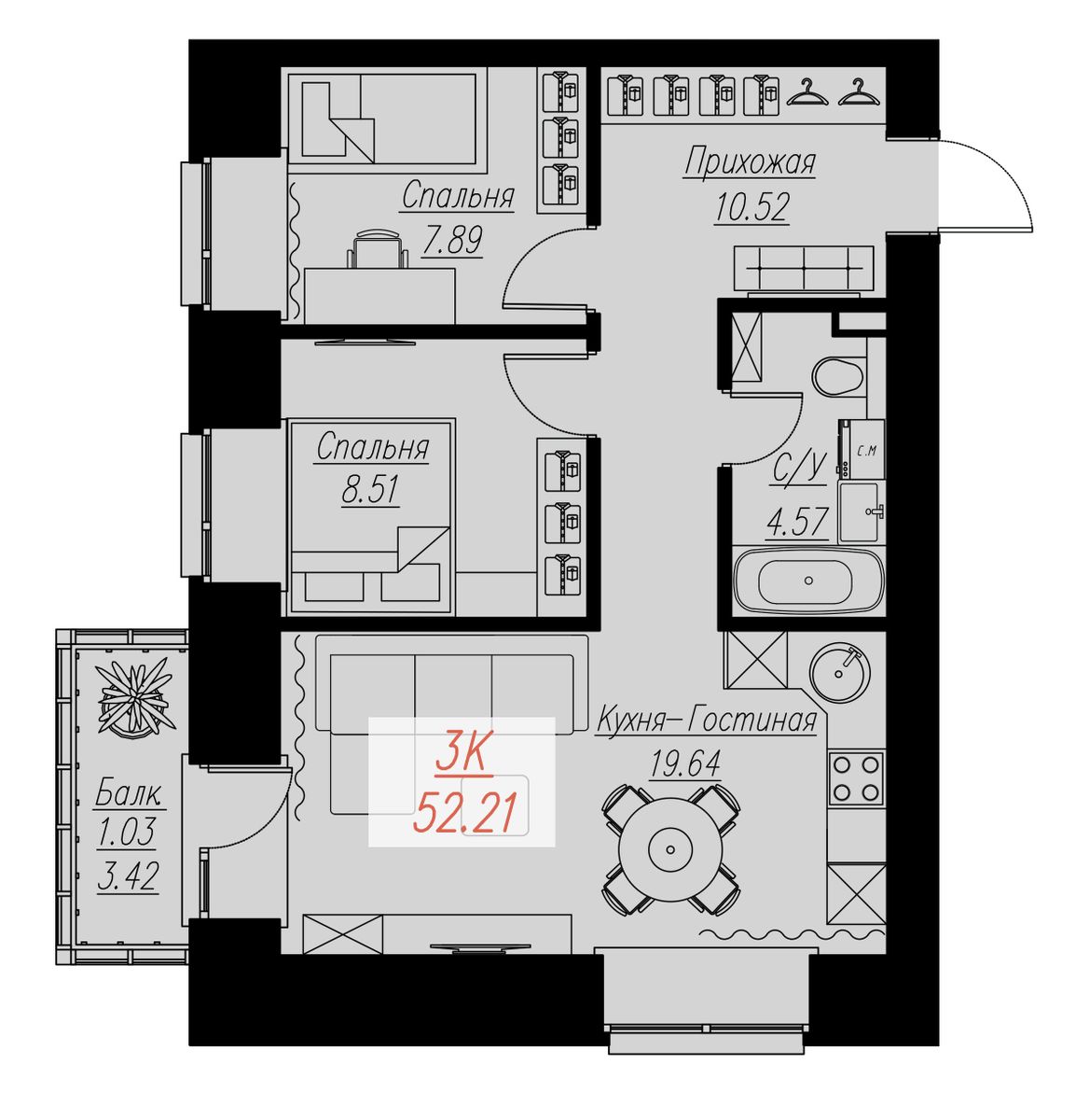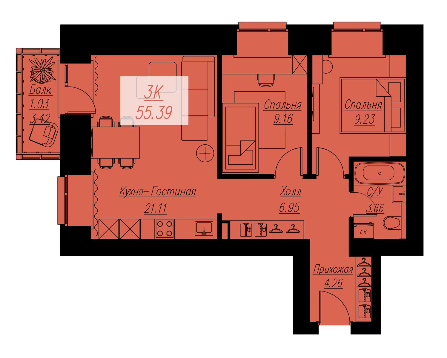 | 3-комн | от 52 м² до 55 м² | от 7,83 млн ₽ | 28 |