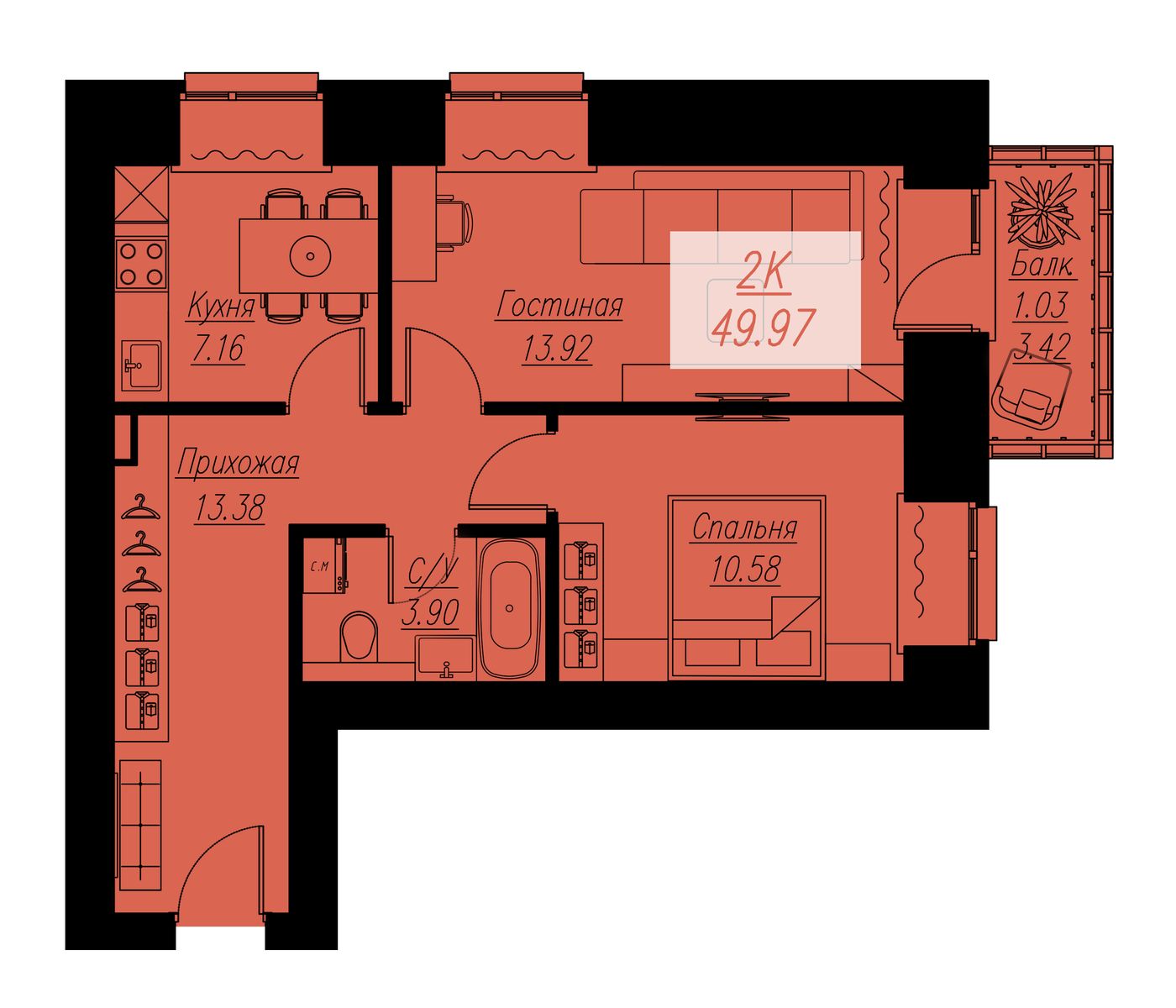 | 2-комн | от 34 м² до 50 м² | от 5,74 млн ₽ | 59 |