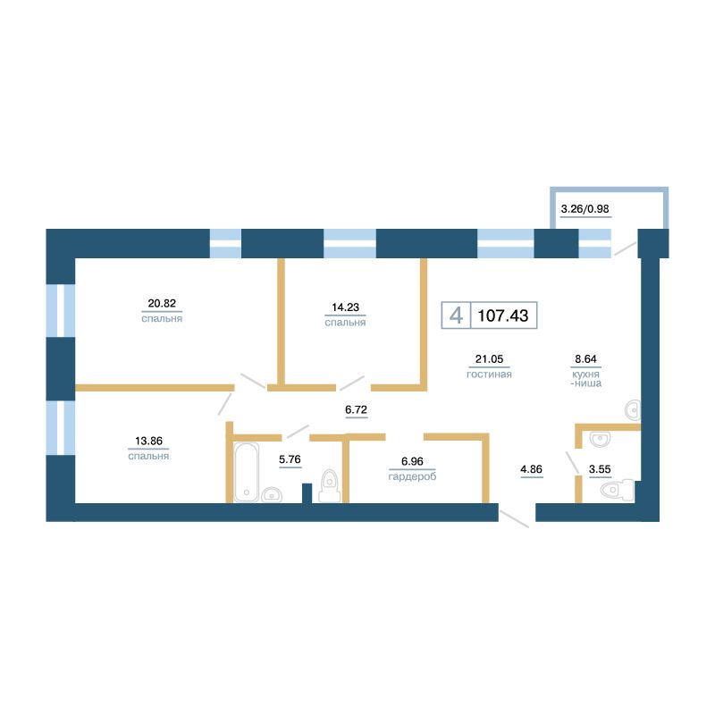 | 4-комн | от 104 м² до 108 м² | от 19,23 млн ₽ | 7 |