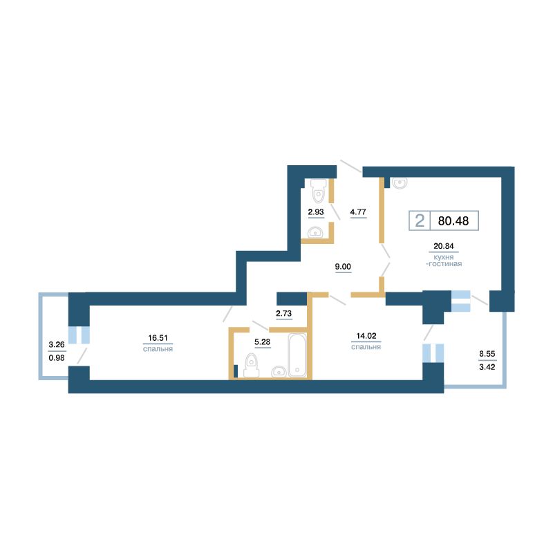 | 2-комн | от 80 м² до 80 м² | от 14,31 млн ₽ | 4 |